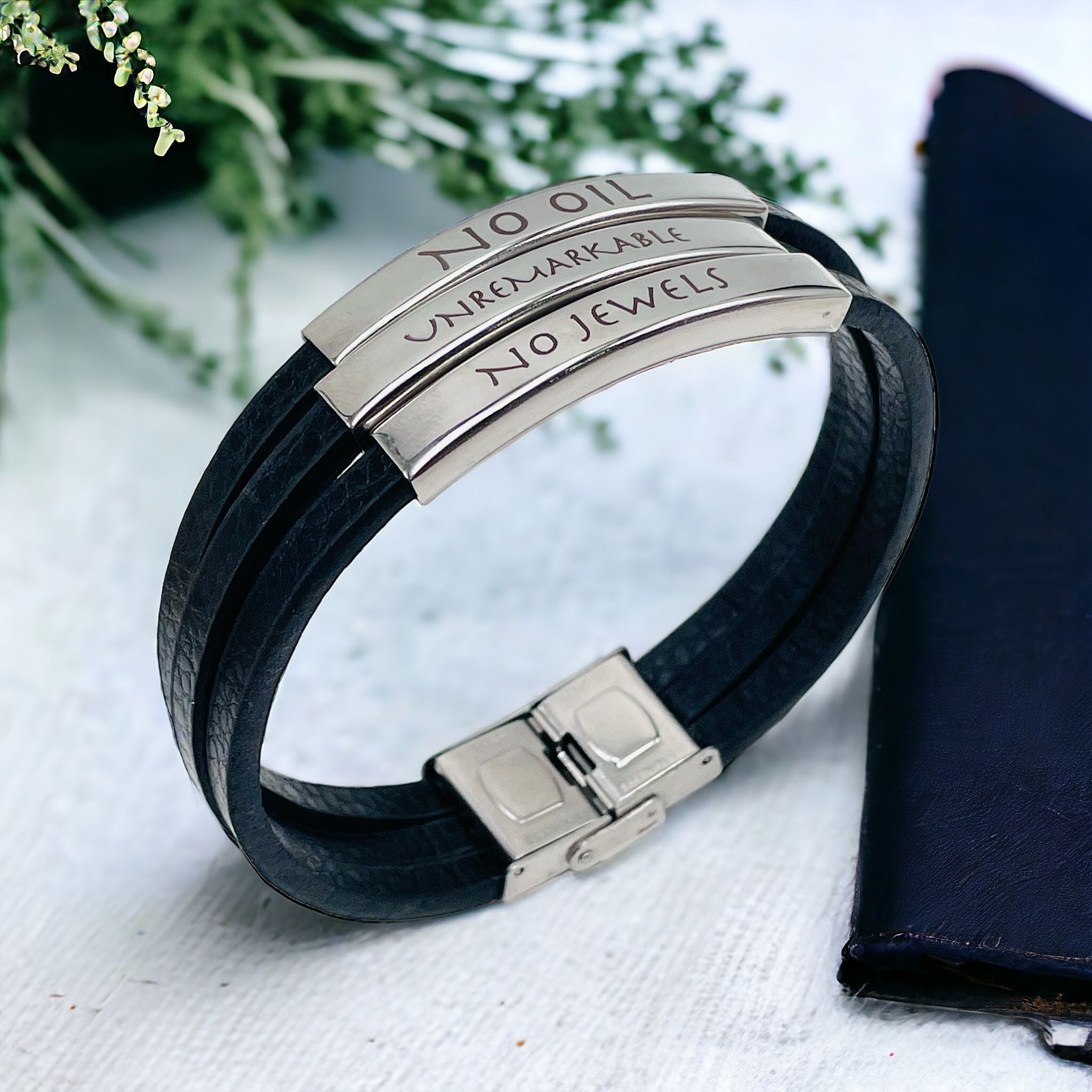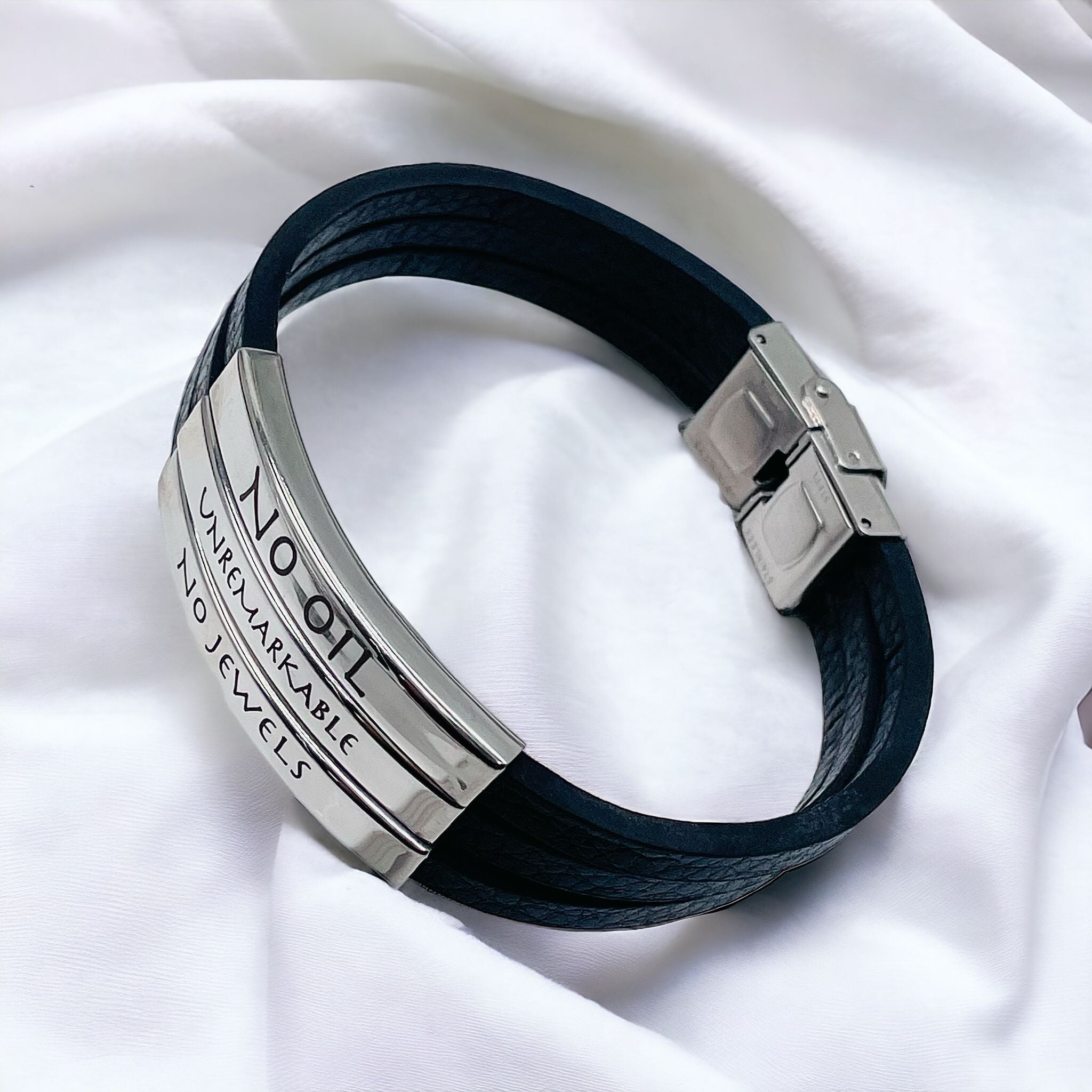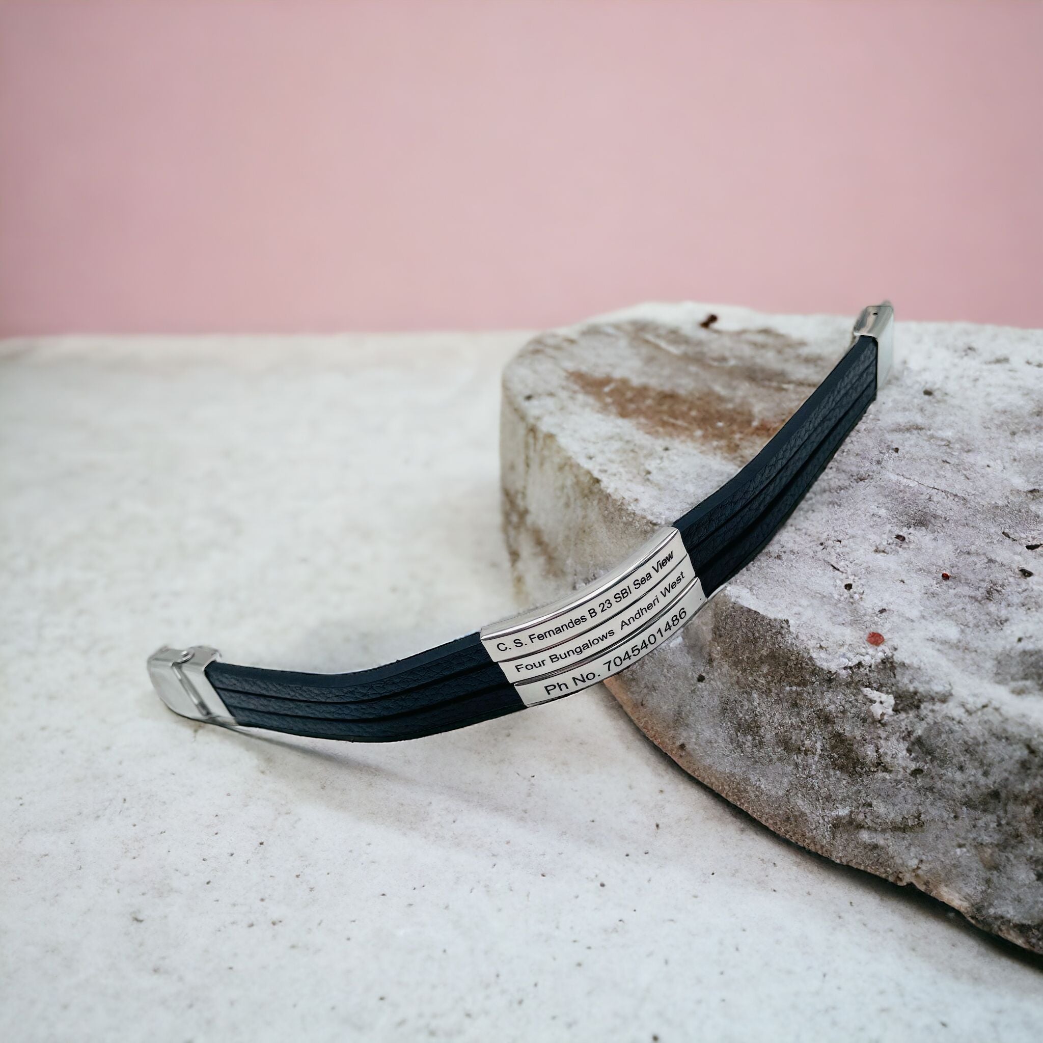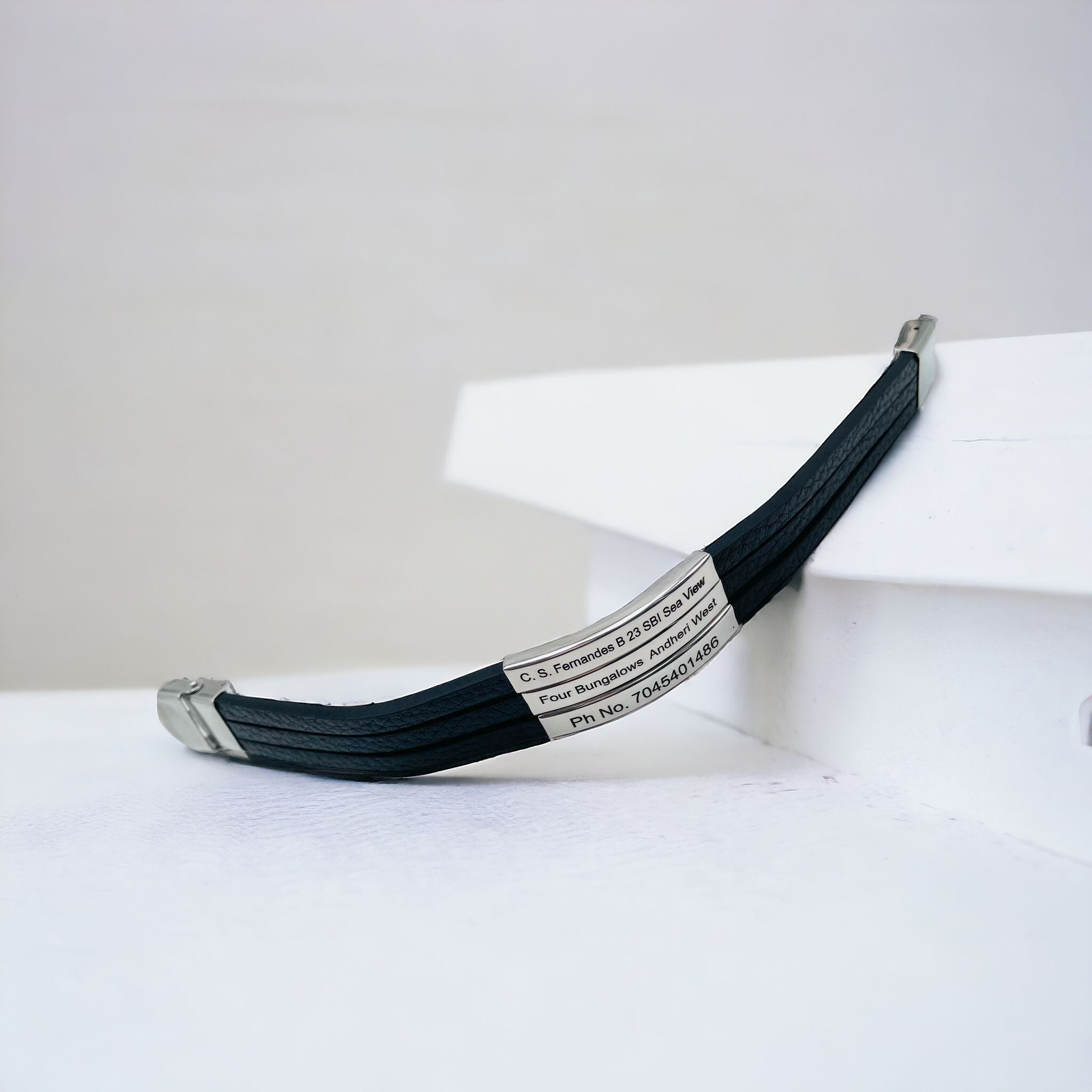 Make: Built With Skin-Friendly, Hypo-Allergenic, 316L Surgical Stainless Steel, Plated With 10 Micron Silver Plating In Glossy & Matte Finish. Great Craftsmanship Of The Silver Accents. The Triple Layers Of Smooth, Soft Yet Durable Handcrafted Black Textured Leather Sit Very Comfortably On The Wrist. This Is A No-Compromise High Quality Piece Of Jewellery Sure