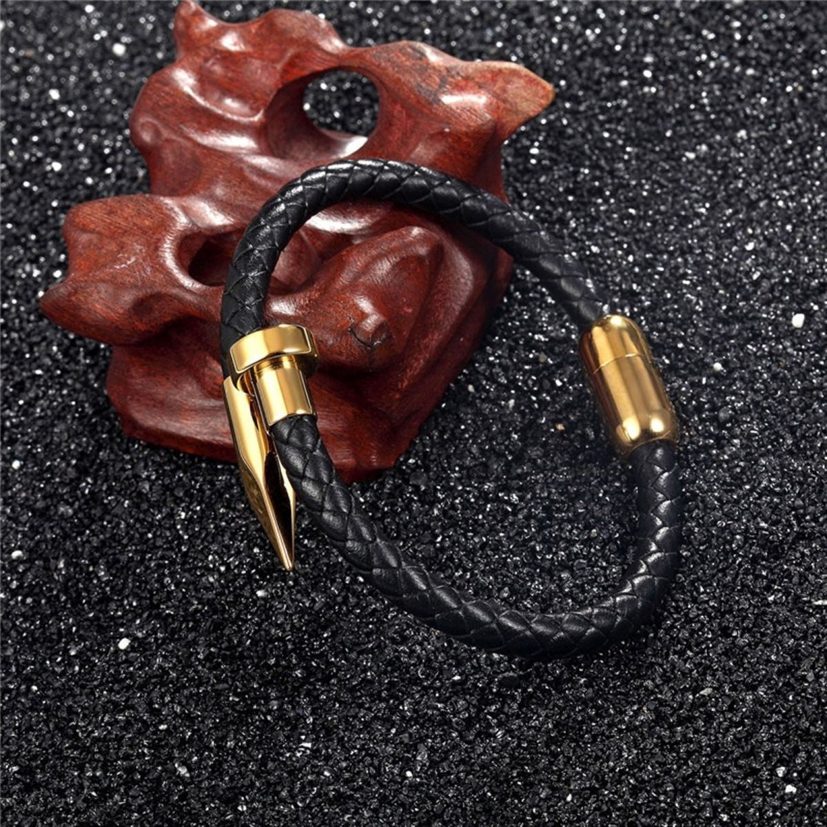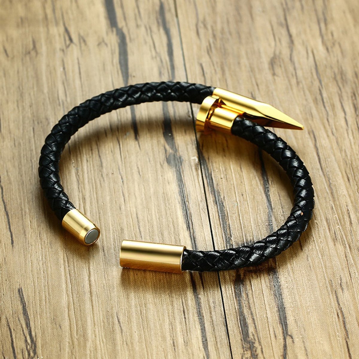 MAKE: Classic Gothic Nail Design Built with 316L Grade Surgical Stainless Steel, Highly Durable IP Gold Black Plated. Handcrafted 100% Genuine Braided Black, Soft Yet Durable Leather