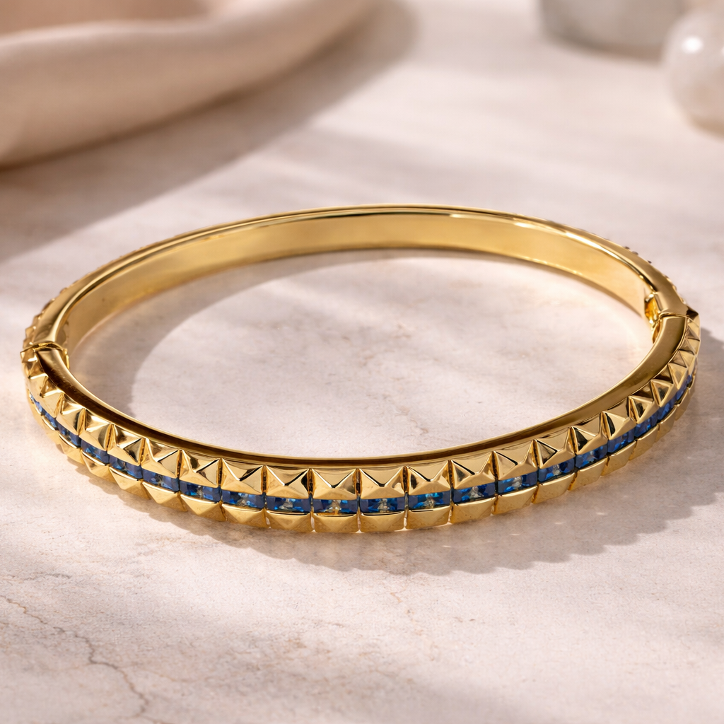 Stylish cuff & kada design with oval-shaped blue and green CZ stones