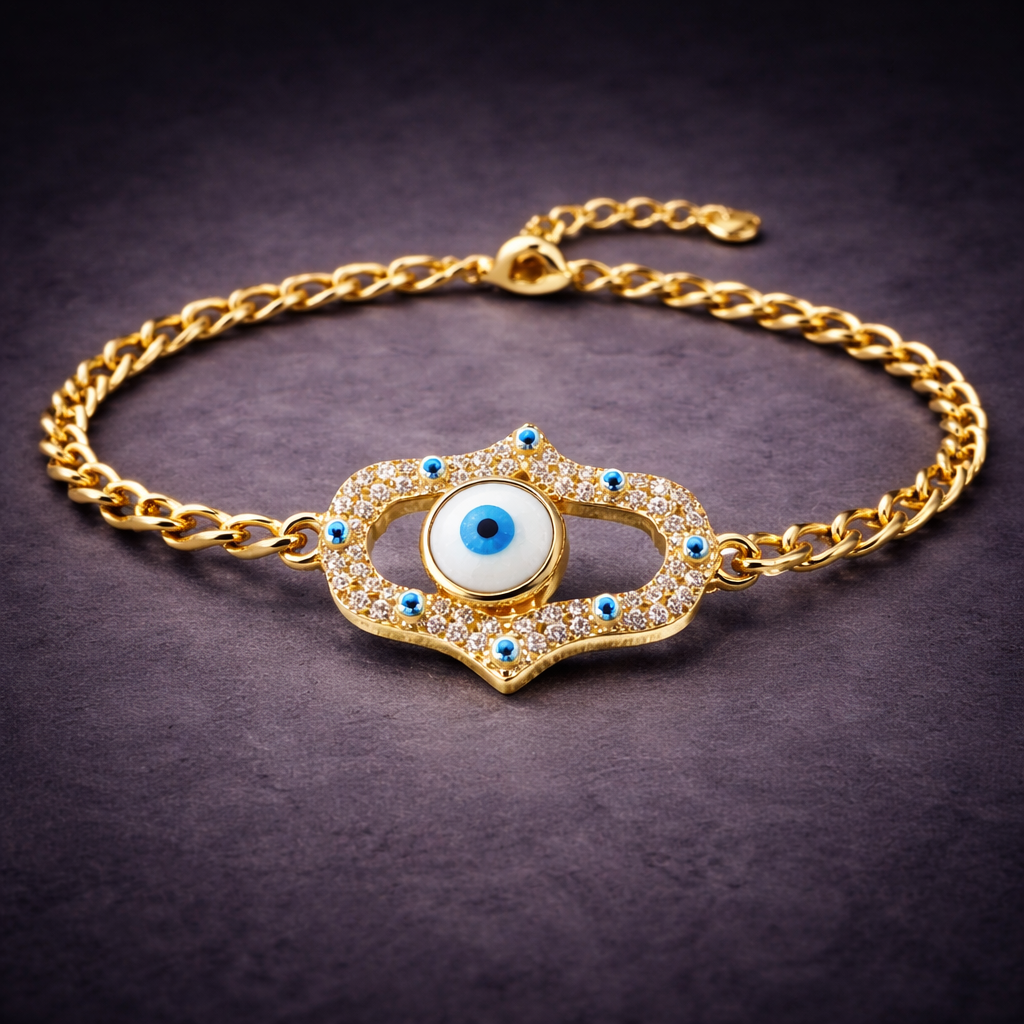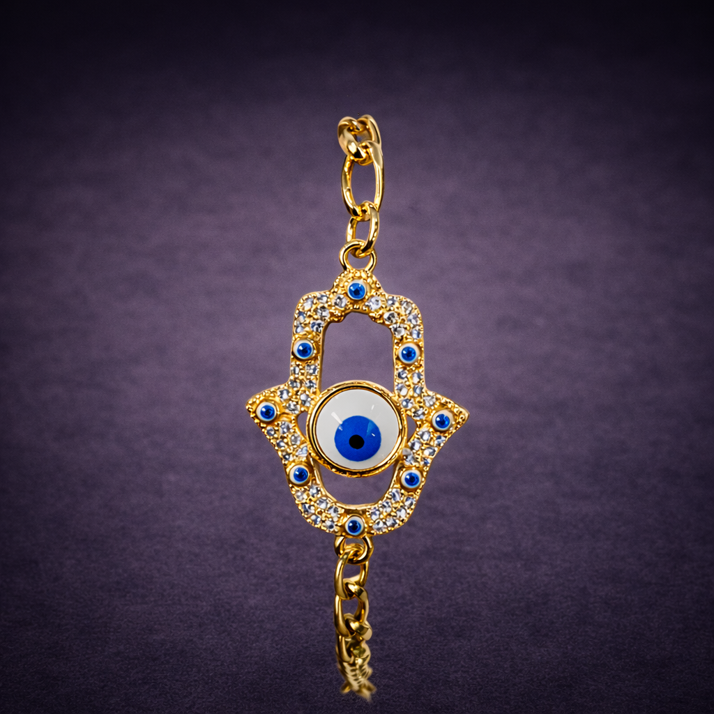 Add a touch of protection and elegance to your everyday style with this beautifully crafted Hamsa Evil Eye bracelet. Designed with a radiant gold-plated finish and sparkling cubic zirconia, this bracelet blends spiritual symbolism with modern fashion. Perfect for daily wear or gifting, it brings both style and positive energy to your look.