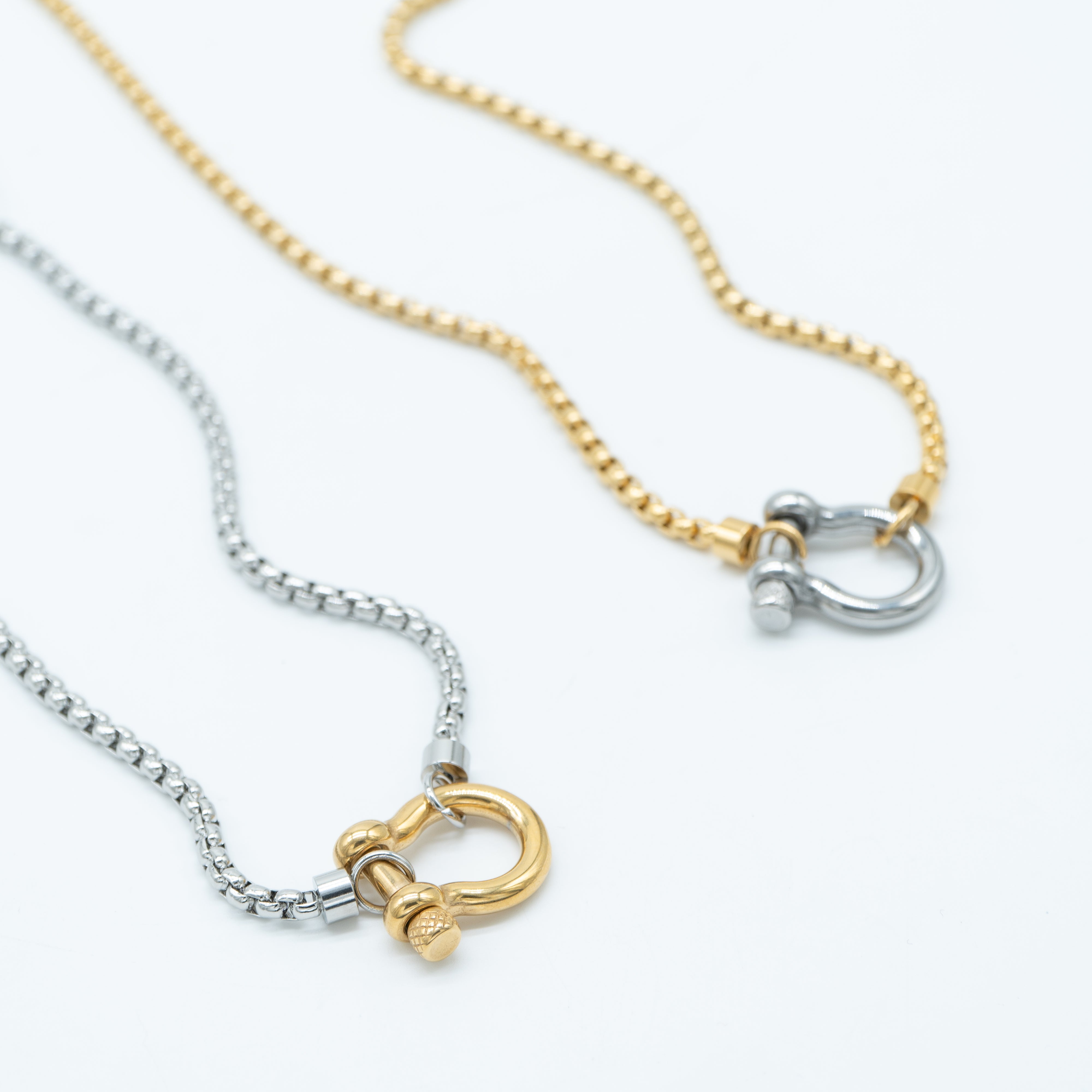 Gancini Unisex Necklace is an homage to classic men's jewelry. Inspired by the iconic Gancini design, this piece adds a unique touch to your everyday style. Its versatile design effortlessly transitions from casual to formal, making it an essential addition to your wardrobe. Pair it with a crisp shirt for a polished look or a beach linen shirt for a relaxed look.