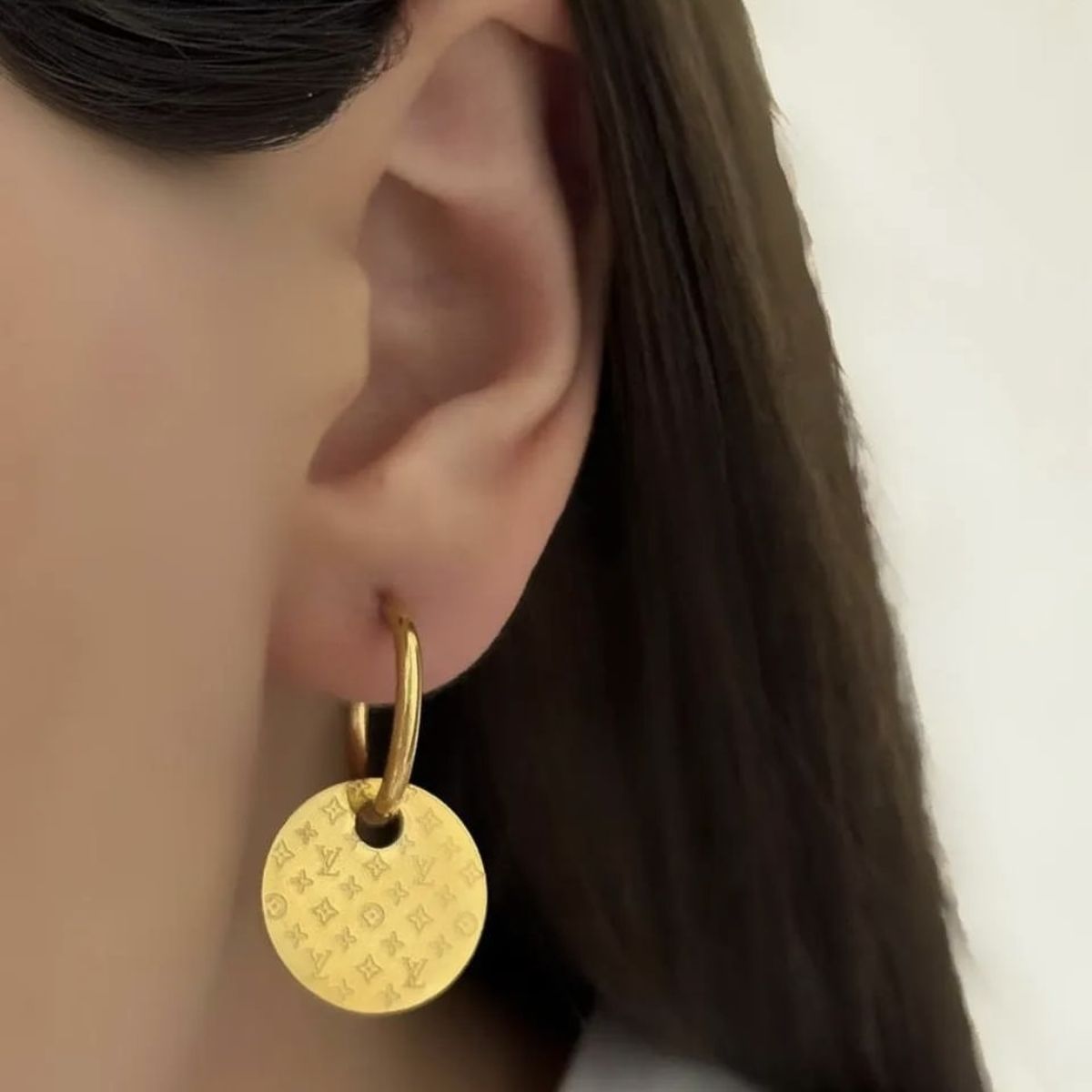 Add a touch of modern elegance to your everyday look with these Clover Flower Stainless Steel Gold Hoop Drop Earrings. Designed with a minimal engraved clover disc and a polished gold finish, these earrings offer effortless style with long-lasting shine—perfect for daily wear or subtle occasion looks.