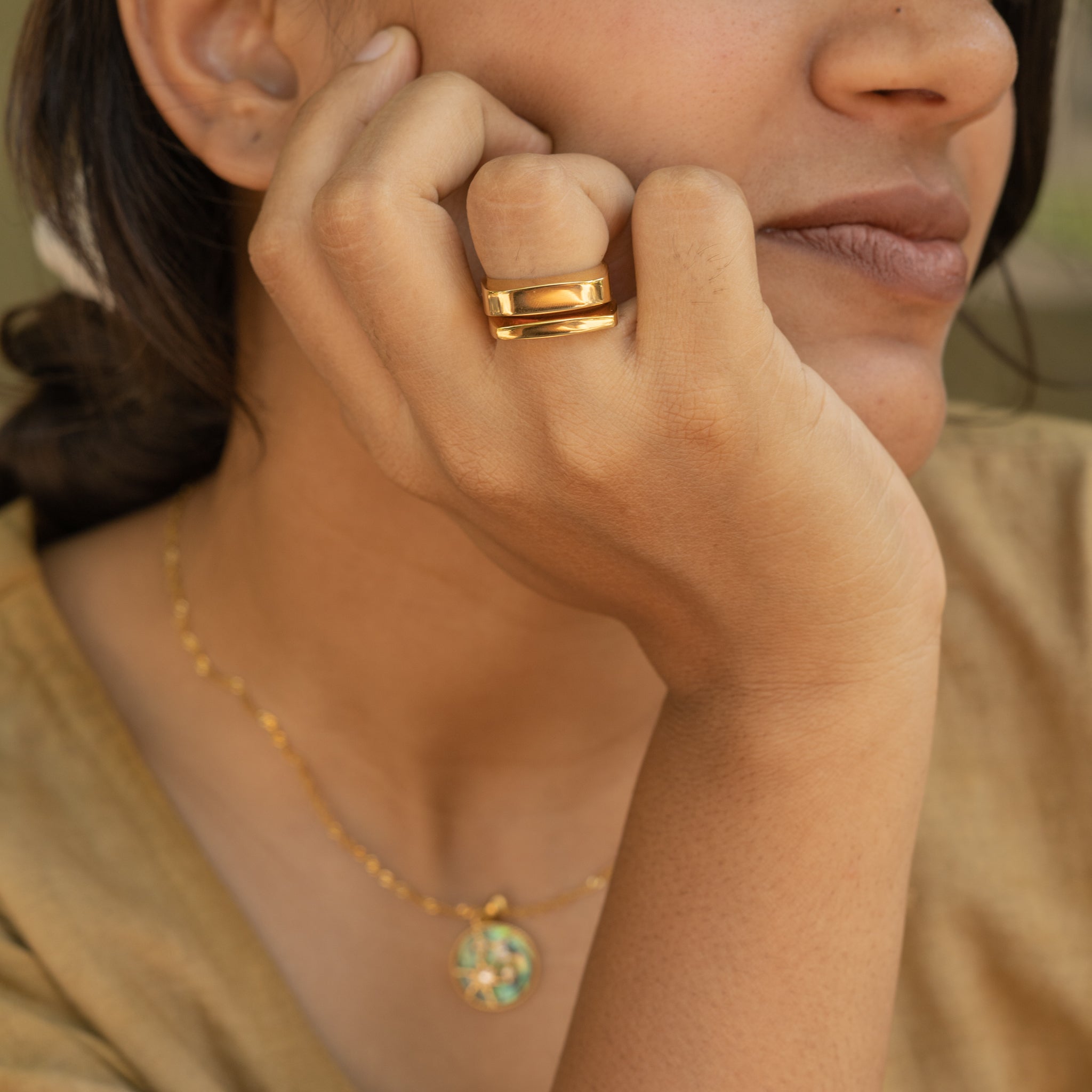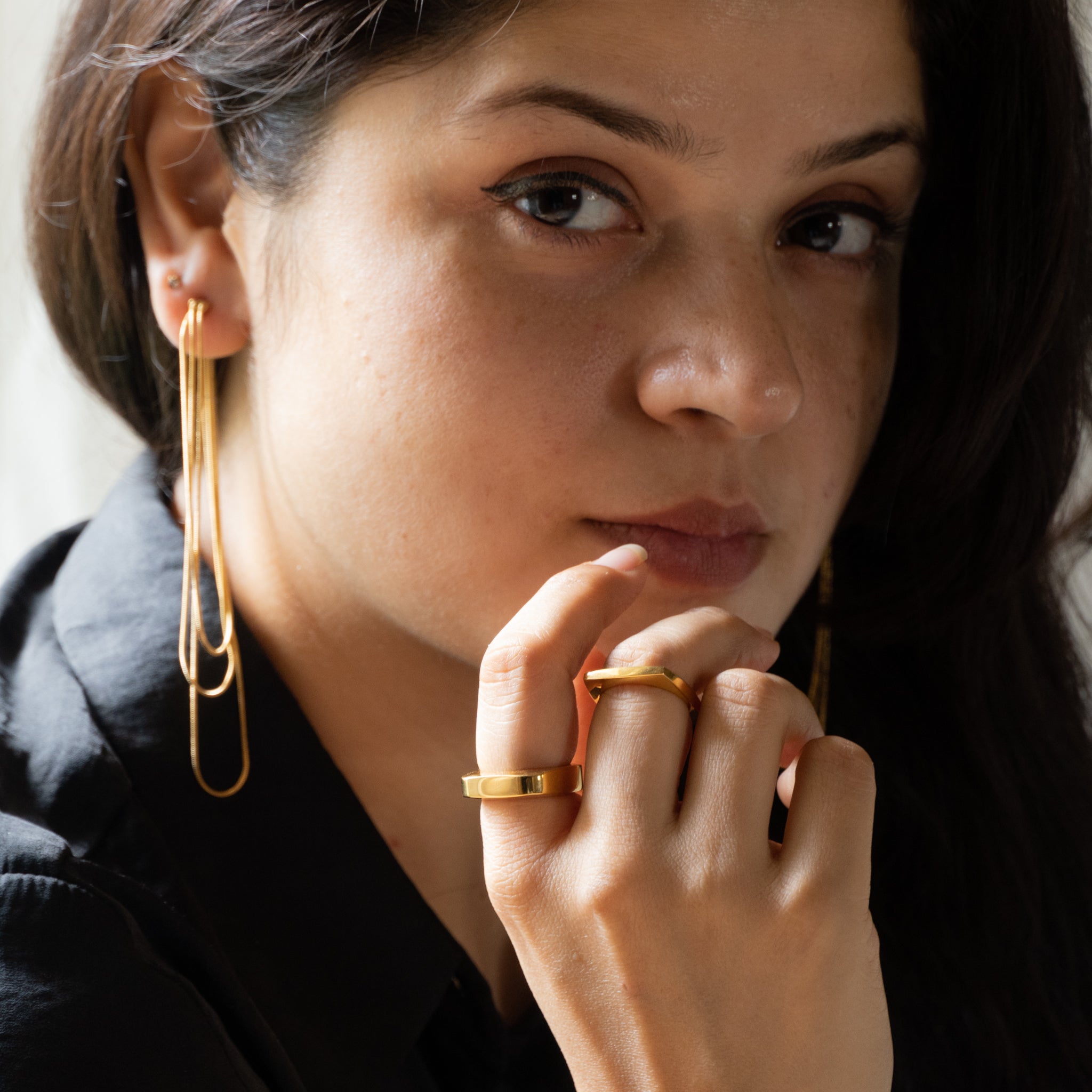 Make a statement with our Geo Golden Rings. This minimalistic and stylish design can be worn individually or together with everything from work wear to party wear, making it perfect for everyday wear and special occasions.