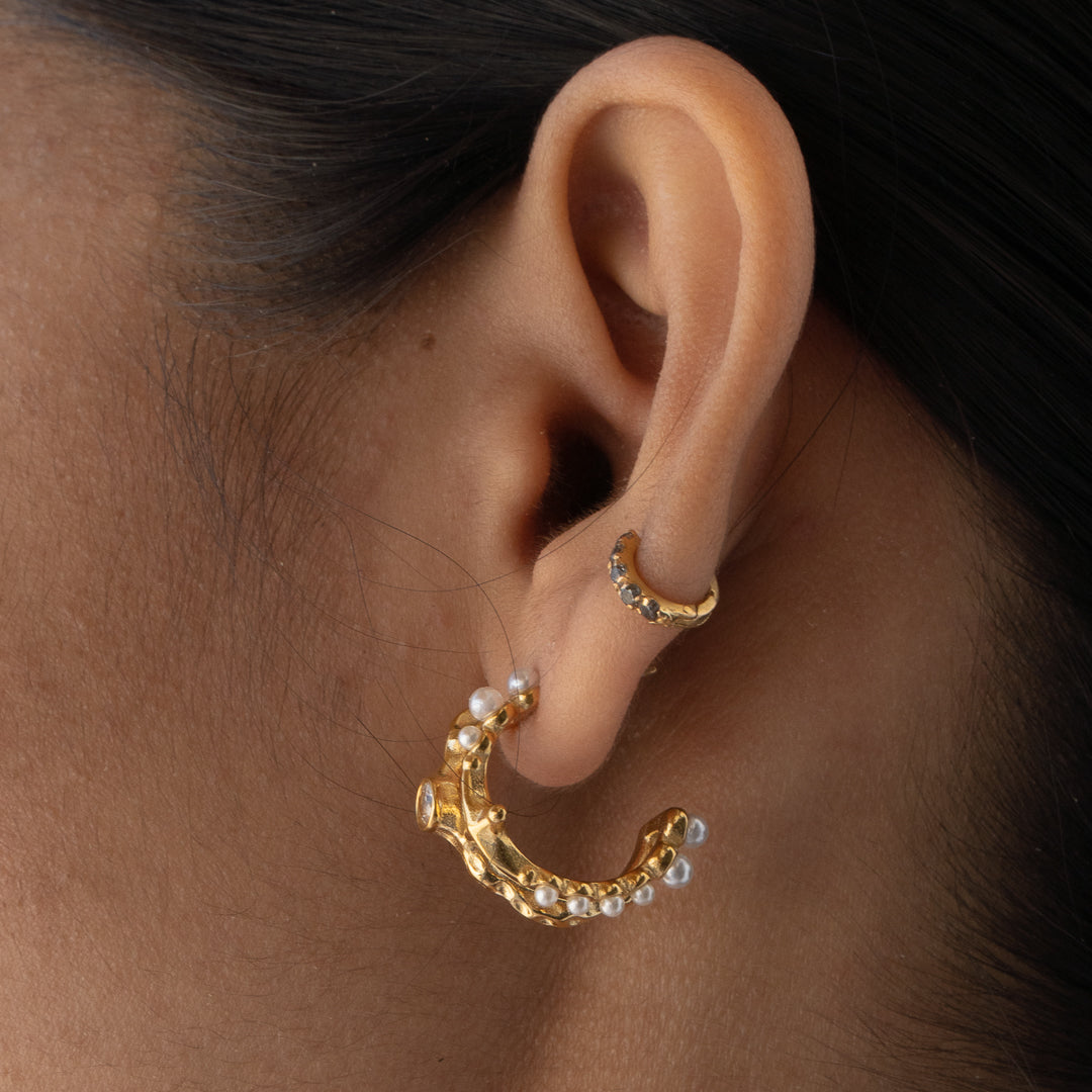 Minimal with a touch of glamour, Nina Hoop Earrings effortlessly transition from office chic to party-ready. Picture them as your go-to accessory, seamlessly complementing your style changes from day to night. For some refreshing elegance, pair them with a classic saree to captivate attention. Sometimes, less truly is more.
