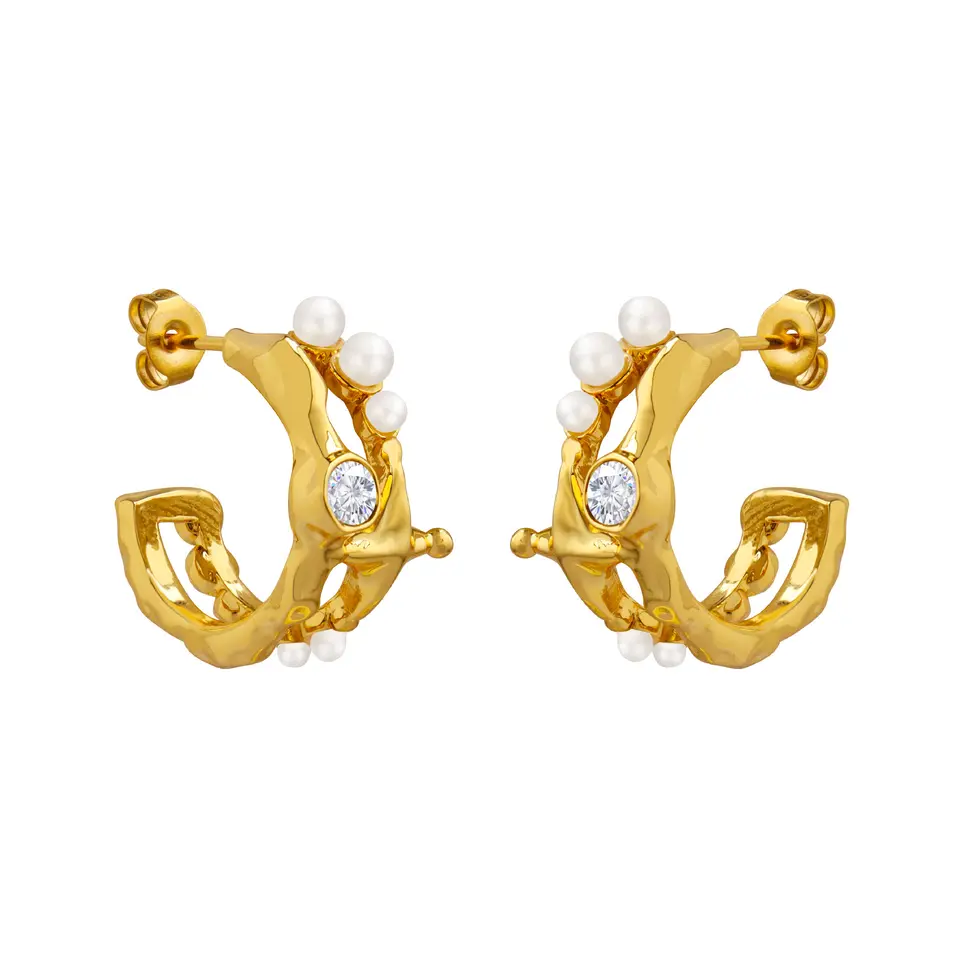 Material - 18kt Gold Plated Stainless Steel, Zircon Crystals, High Quality Imitation Pearls