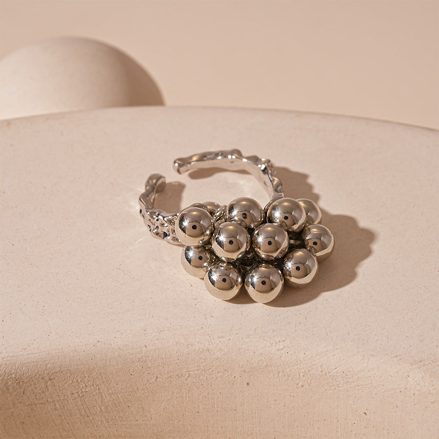 Make a bold yet elegant statement with this Designer Cluster Silver Plated Plain Adjustable Ring. Featuring a contemporary cluster of polished metallic beads, this fancy ring adds instant glamour to both casual and party looks. Its adjustable open band ensures a comfortable fit, while the stone-free design delivers a modern, high-shine finish perfect for everyday wear or special occasions.