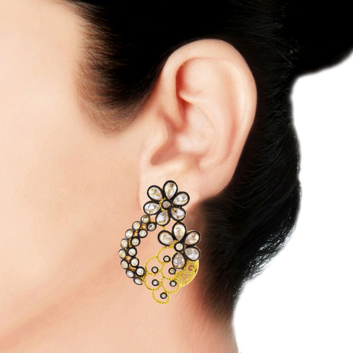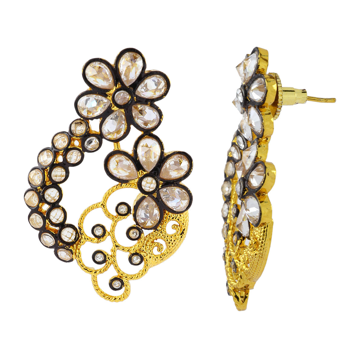 Design: Festive Yet Graceful Design Embellished With Beautiful Kundans Elements And Pearls With Black Rhodium Pave Setting.