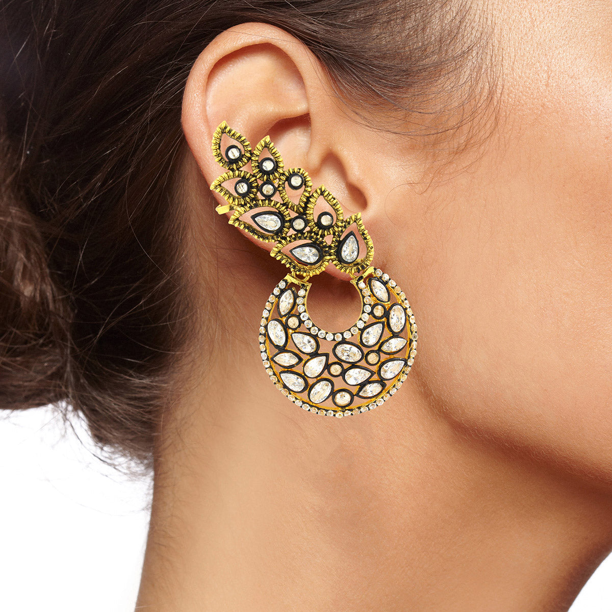 Design: Unique Ear Cuff That Adorns The Ear Fully. Clip Provided Ensures The Ear Cuff Stays On Effortlessly.Textured Gold Plated Brass Gives This Piece That Extra Detailing.