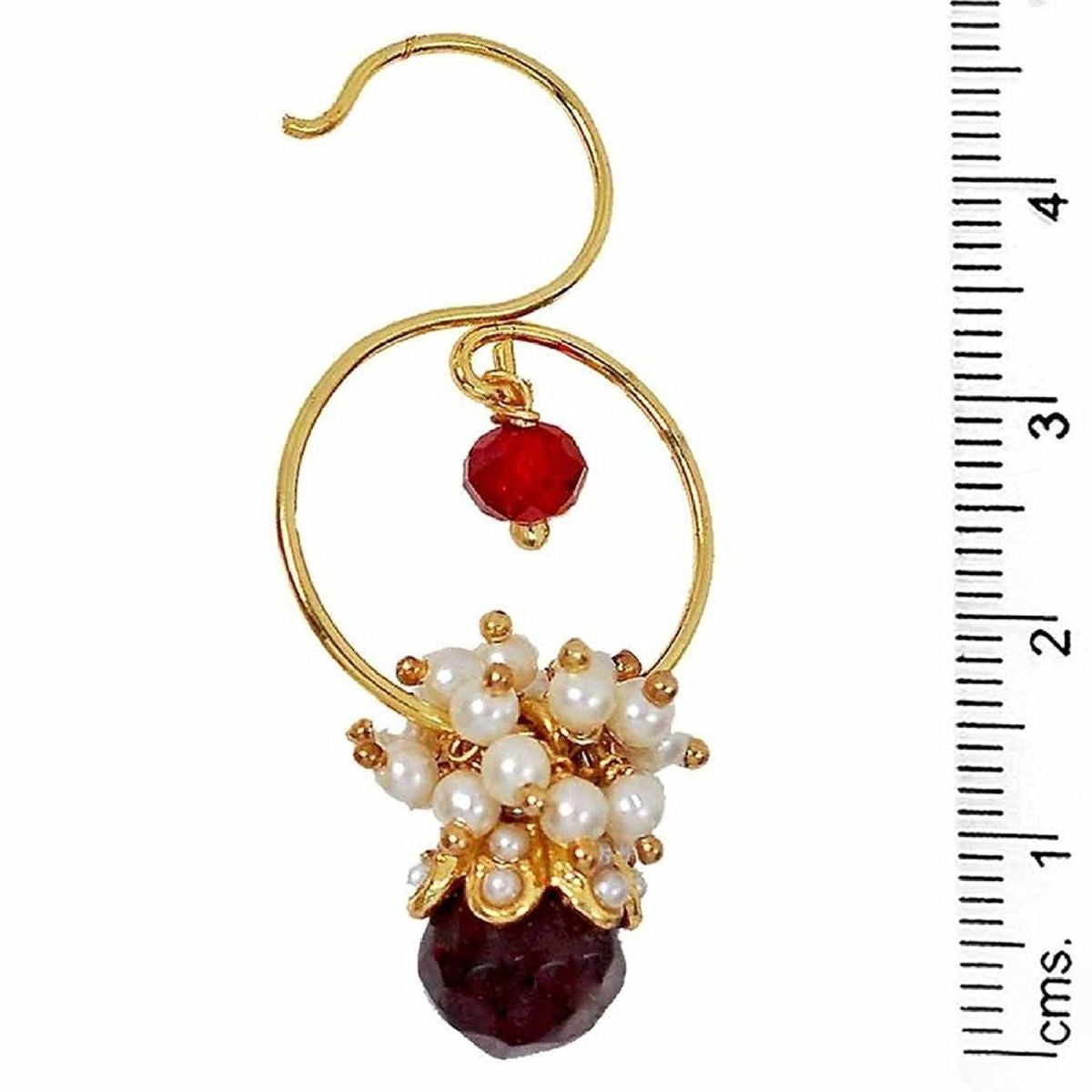 Design: Intricate Handcrafted Drops In Antique Gold Brush Finish, Embellished With Beautiful Ruby Red And Garnet Shade Stones