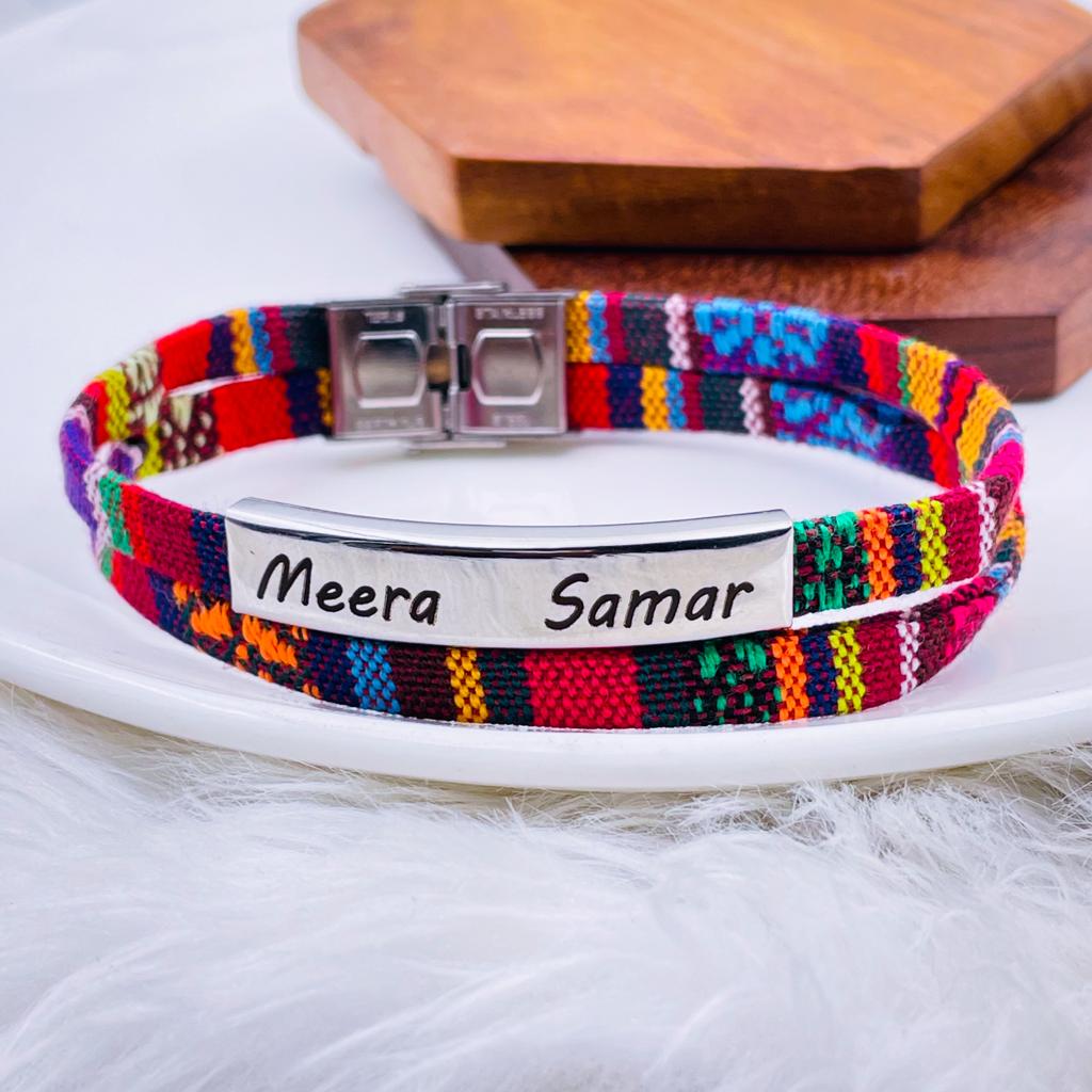 A Personalized Hand Crafted, Woven Id Bracelet With A Custom Message Engraved: Front Your Engraving Lends This Handsome Piece An Wrist Band Leather Id Bracelet Of Unique Thoughtfulness! Personalize This Woven Id Bracelet With His/Her Name, Family Name, Nick Name, A Short Inspirational Phrase, Or A Special Date, You Know He Will Love This Unique Personalized Id Bracelet!