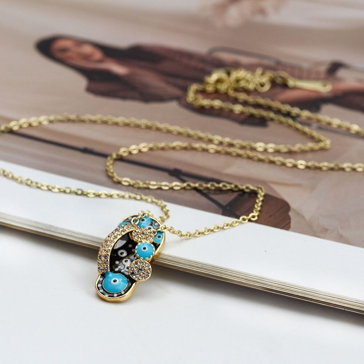 Footwear Sandals Evil Eye Pendant Chain Necklace Brings You Luck And Protects You From Bad Energy. It Guards Against Misfortune Happening In One's Life. Protects You From Any Ill-Will That Could Otherwise Have A Negative Effect On Your Well-Being Or Your Life In General.