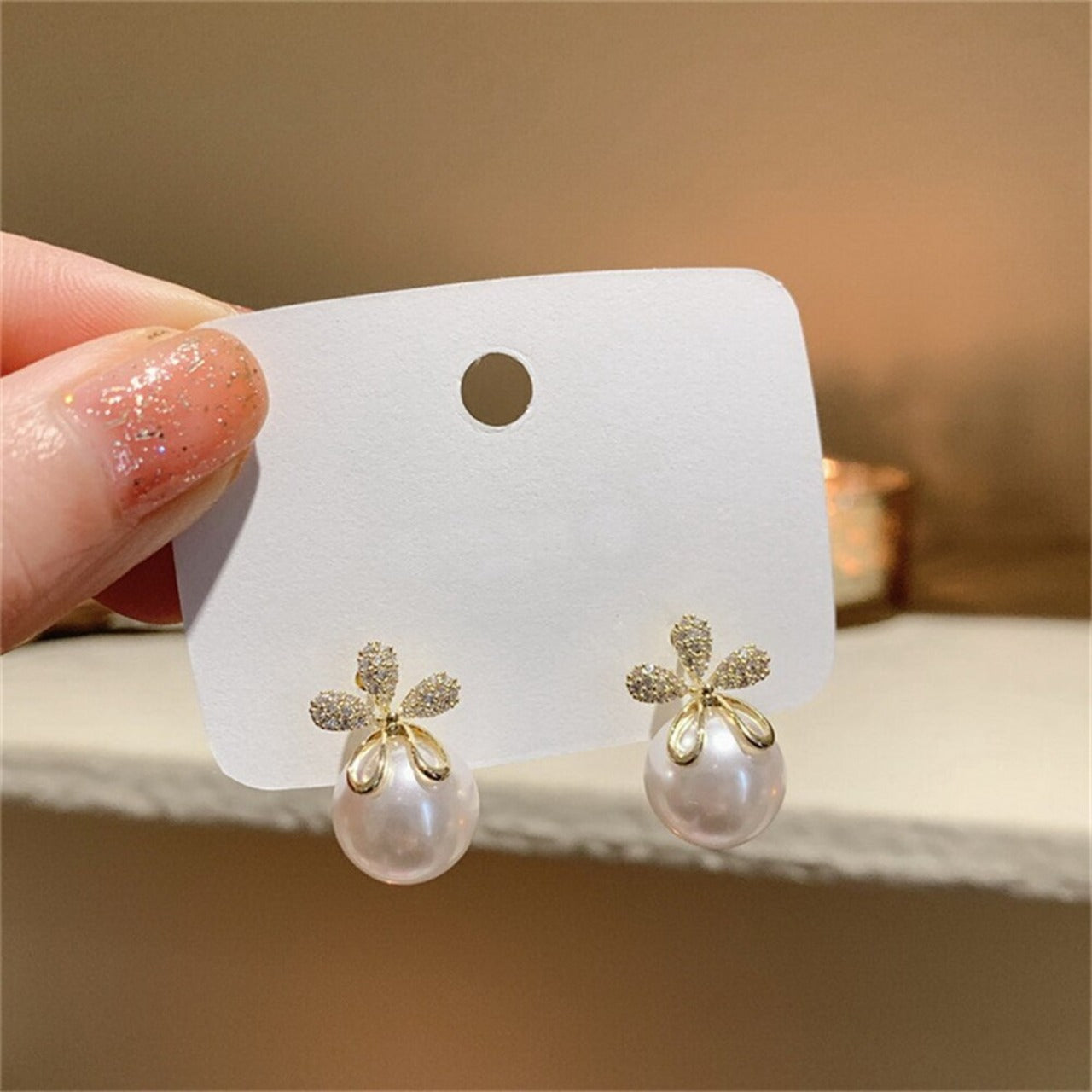 Lustrous pearl drop adds classic elegance and enhances the overall charm.
