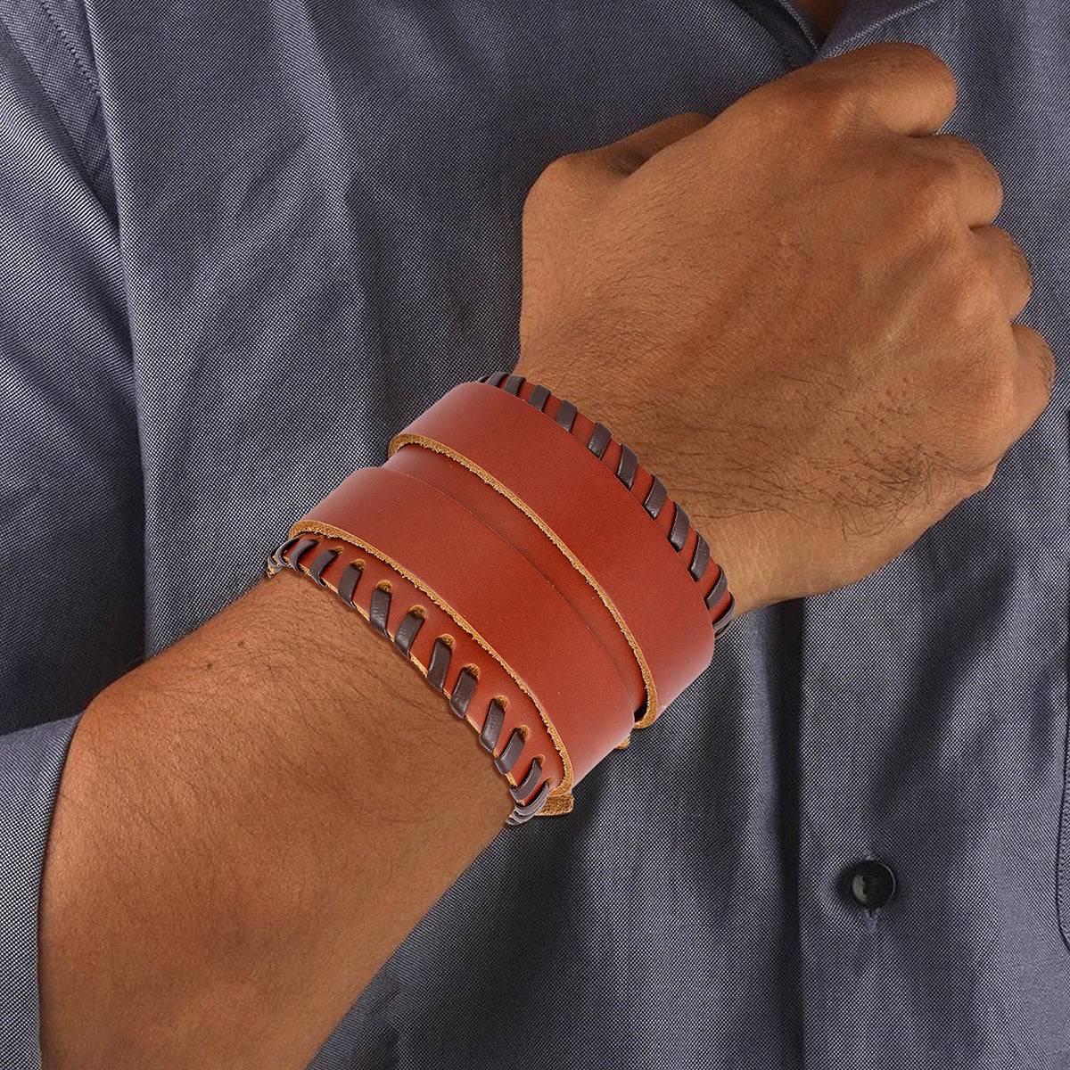 MAKE: A Very Trendy & Stylish Double Fold Wrist Wrap Around Bracelet Handcrafted with 100% Genuine Braided Black &Brown Leather, that is Soft Yet Durable.