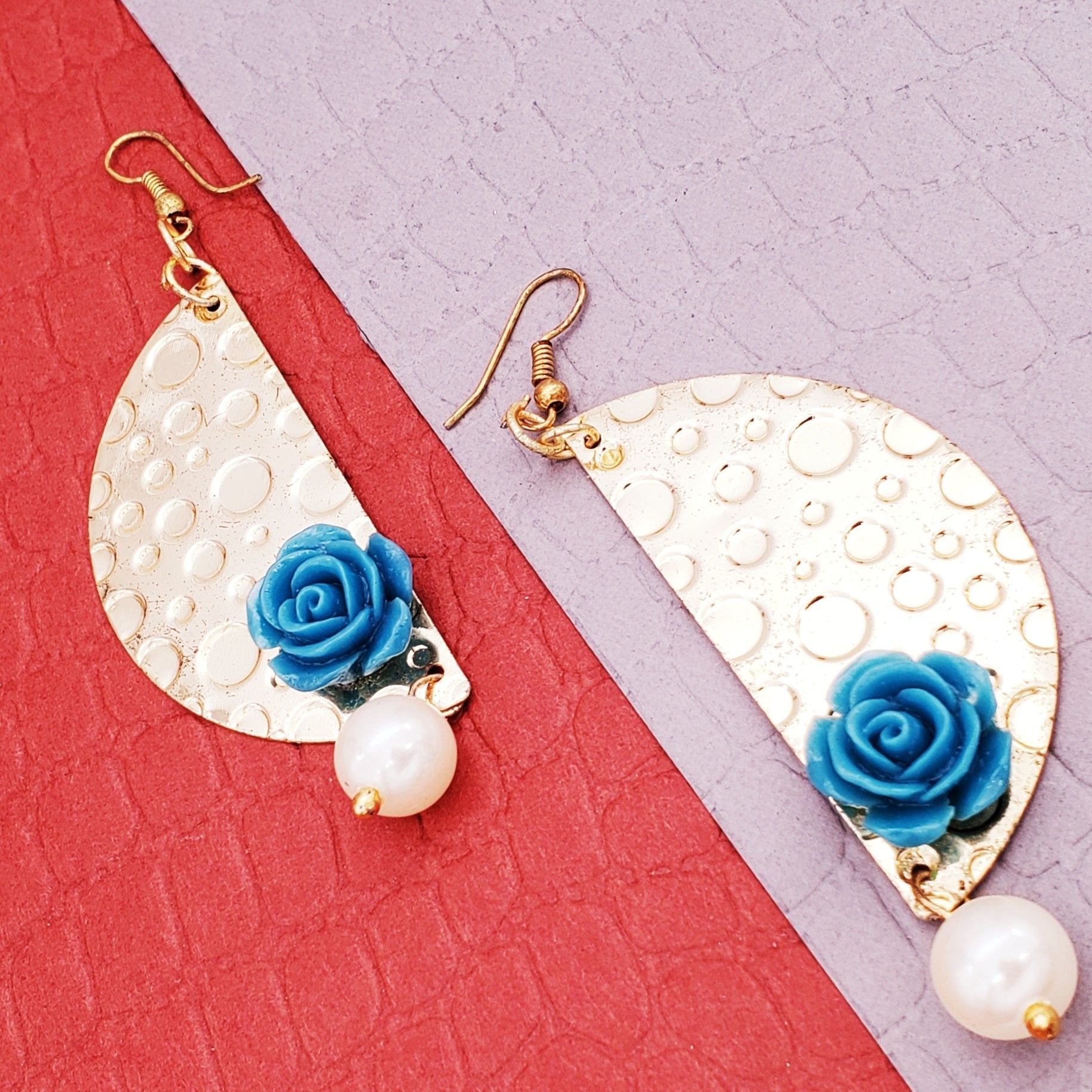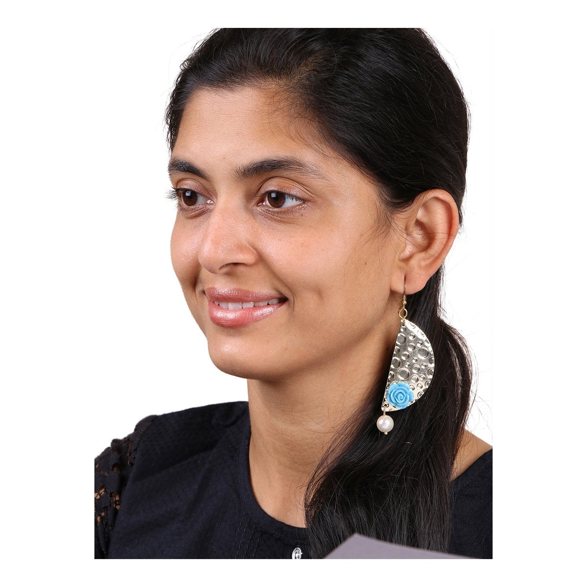 Design: Italian Light Weight Design, With Beaten Gold Sheet Studded With Blue Rose And Pearl.