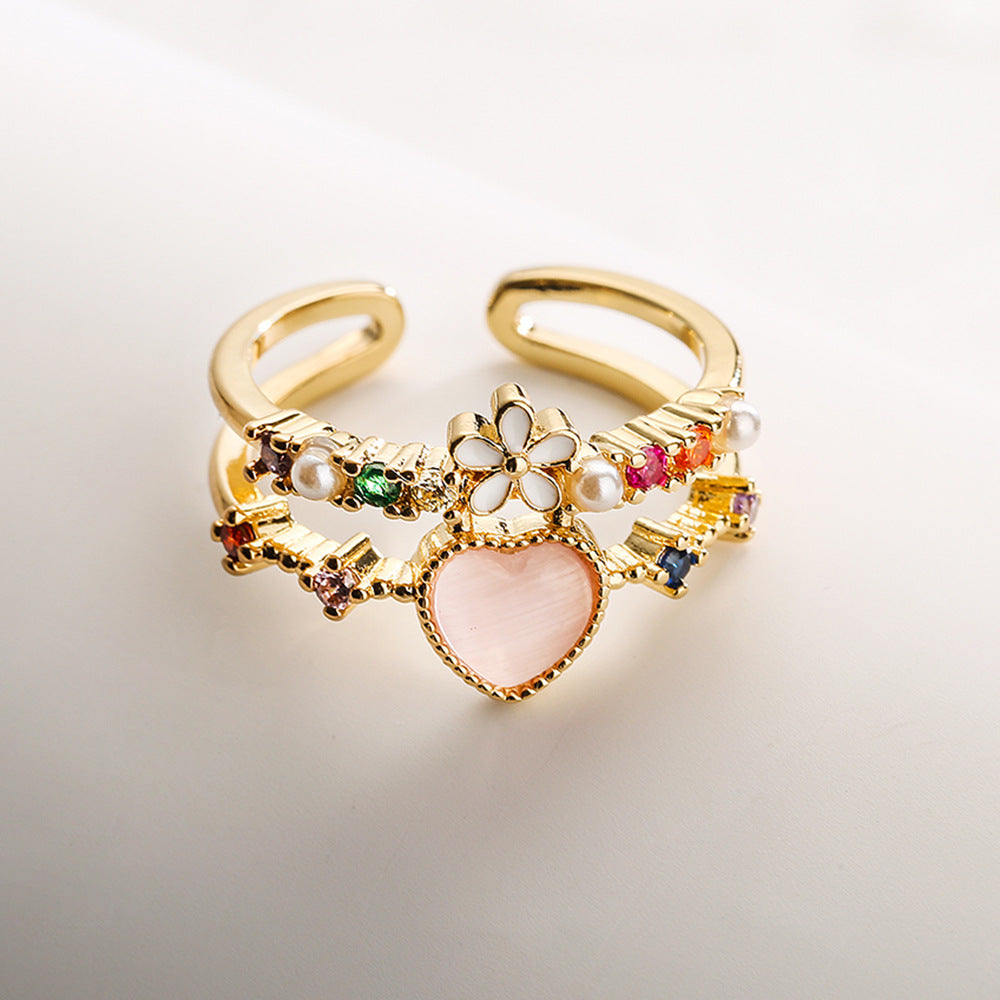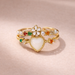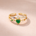 Add a touch of charm and color to your jewellery collection with this heart flower design ring. Beautifully crafted with green, pink, and white cubic zirconia stones arranged in a floral-heart pattern, this ring is finished with a radiant gold plated shine. Made on an anti-tarnish copper base and designed with an adjustable band, it offers lasting comfort, durability, and a playful yet elegant look—perfect for everyday wear, festive occasions, and gifting.