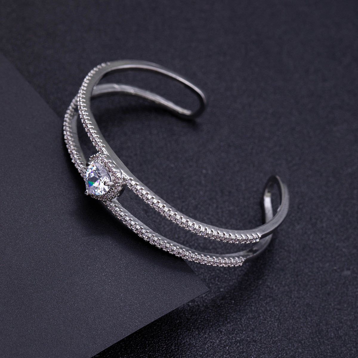 Elevate your everyday elegance with this heart layered silver cuff & kada. Designed with a delicate heart motif and shimmering cubic zirconia, this bracelet blends modern romance with timeless sophistication—perfect for daily wear or special occasions.