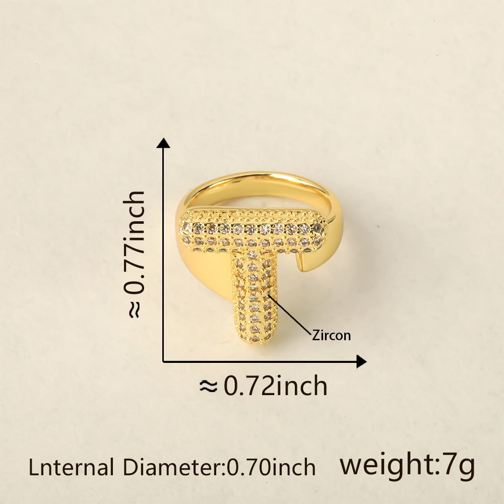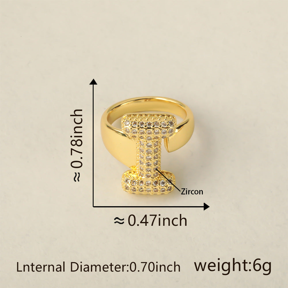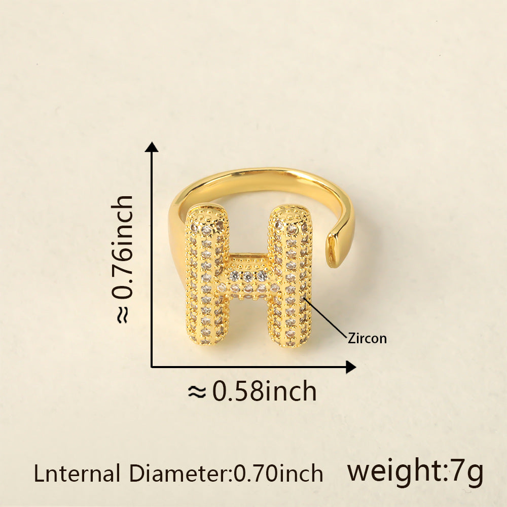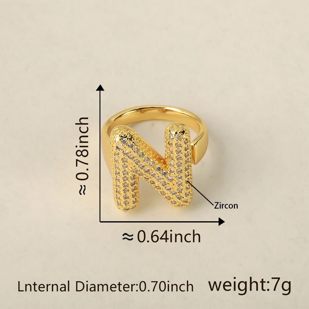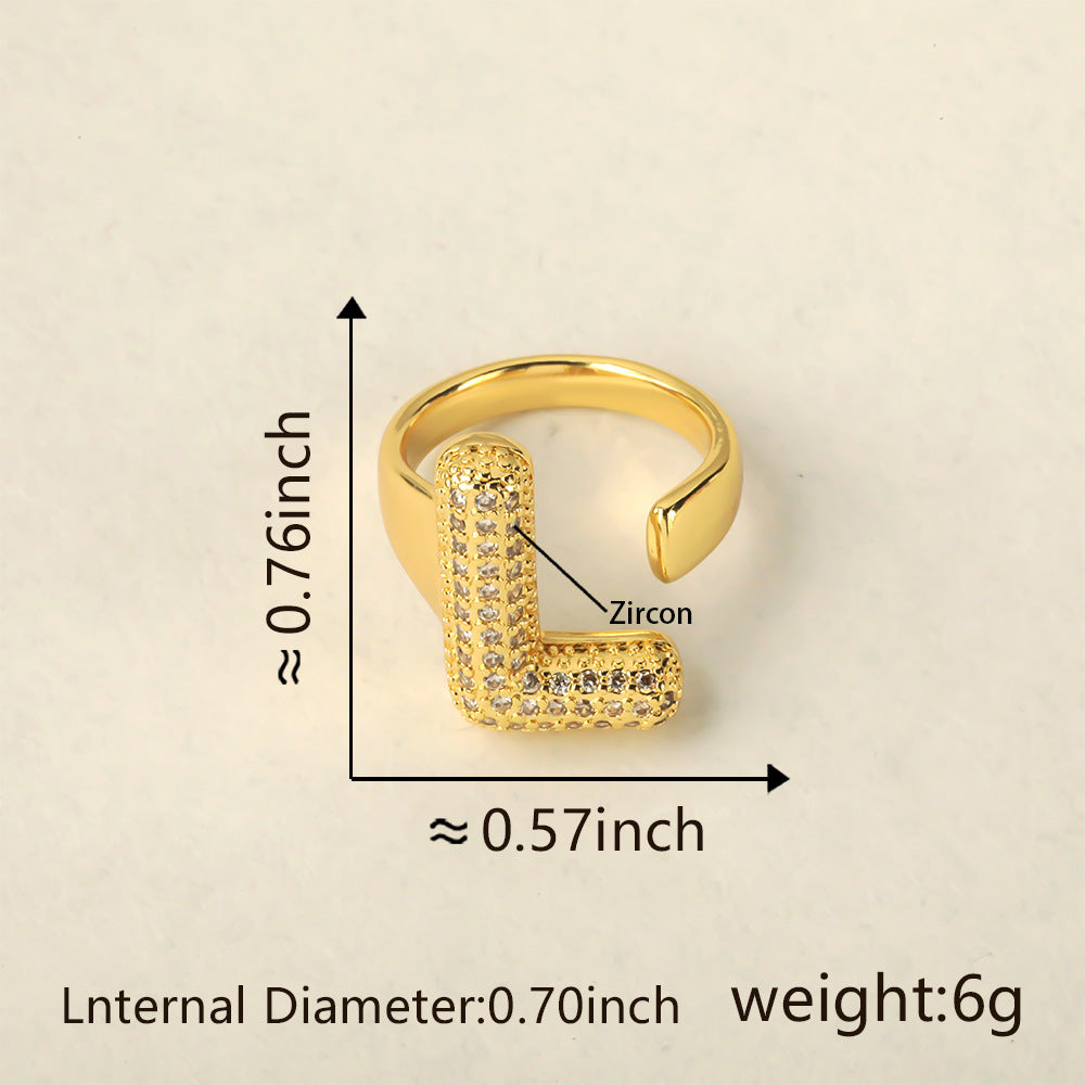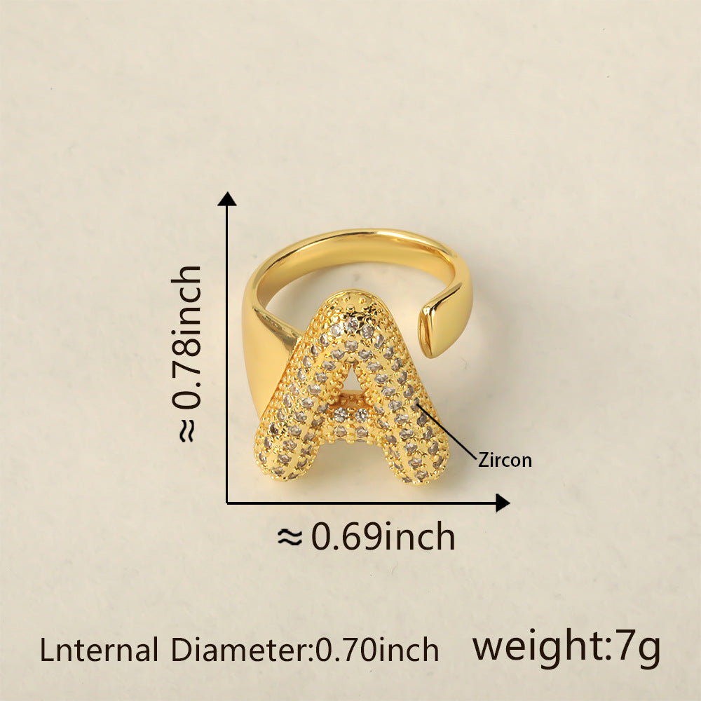 Celebrate your identity with this Initial Letter Alphabet Cubic Zirconia 18K Gold Adjustable Ring for Women — a bold yet elegant piece designed to shine with every gesture.