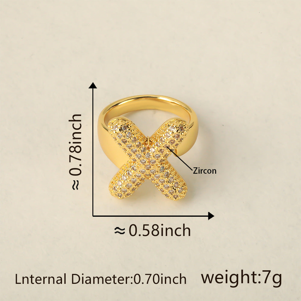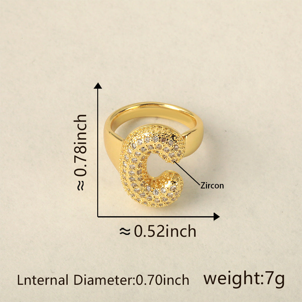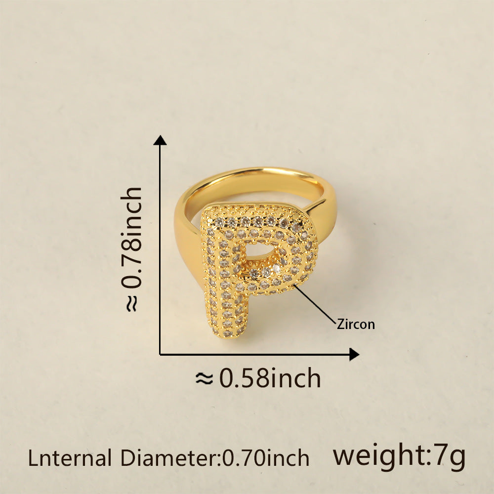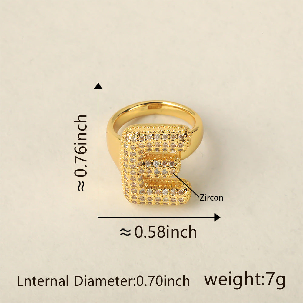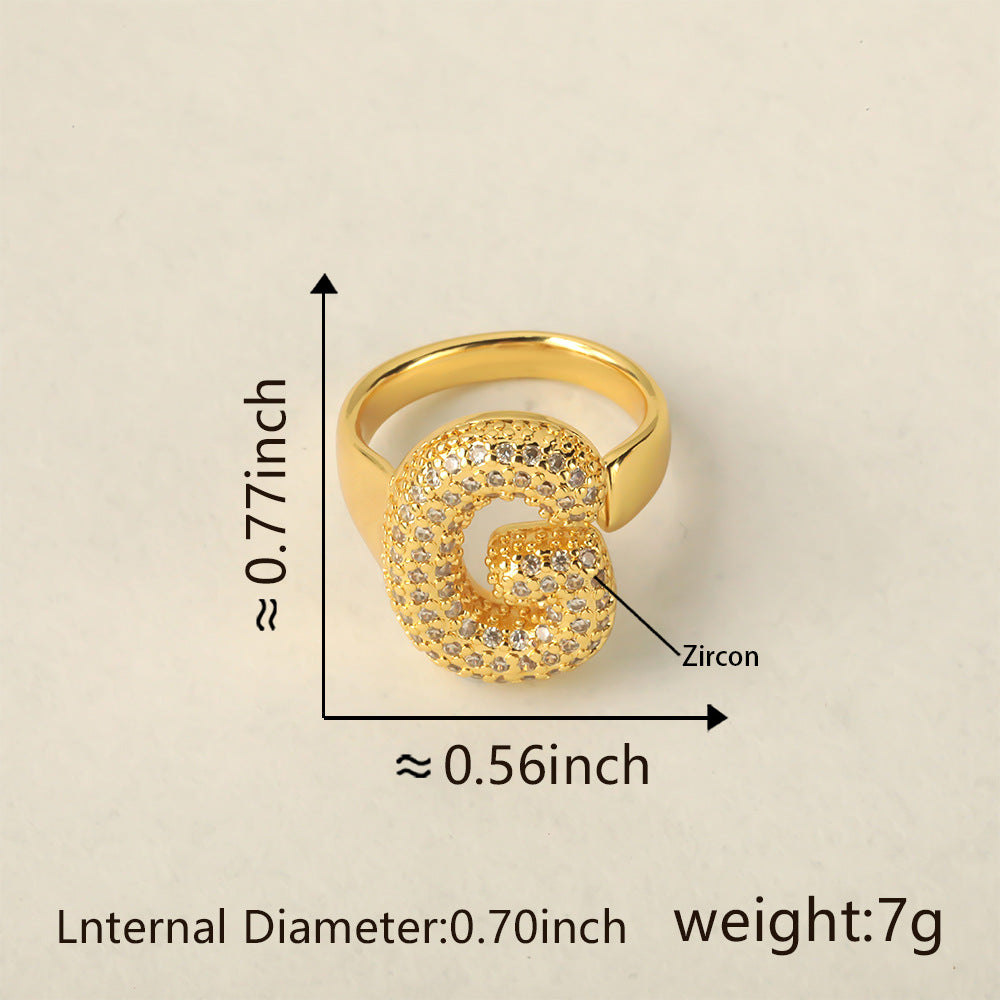 Each ring features a stylishly sculpted alphabet letter, intricately adorned with high-quality cubic zirconia stones for a dazzling diamond-like brilliance. The 18K gold-plated finish offers a rich, luxurious glow while maintaining comfort and durability.