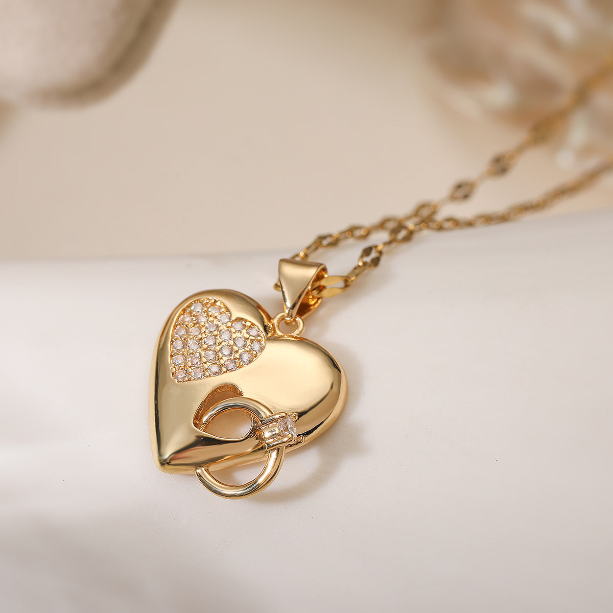 Crafted from premium stainless steel and coated in 18K gold plating, it promises long-lasting shine, anti-tarnish durability, and a luxurious high-polish finish. The heart charm features shimmering cubic zirconia stones that add a radiant sparkle to your look.