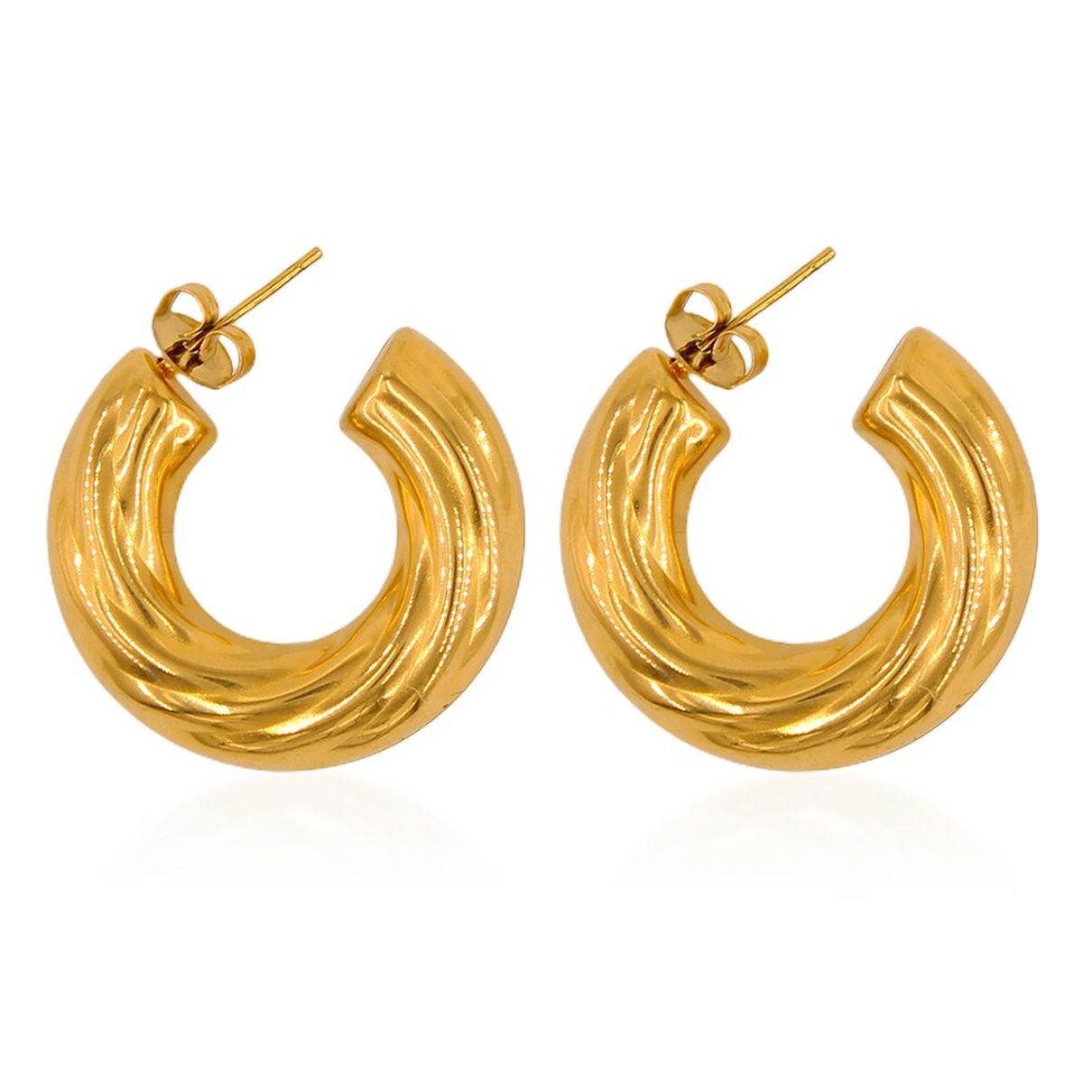 Unique Twisted Gold Hoop Earrings: 18K Gold Hoop Earrings Feature A Twisted Bold Round Hoops Shape, Minimal Geometric Earrings Are On-Trend And Complement The Most Fashionable Outfits.