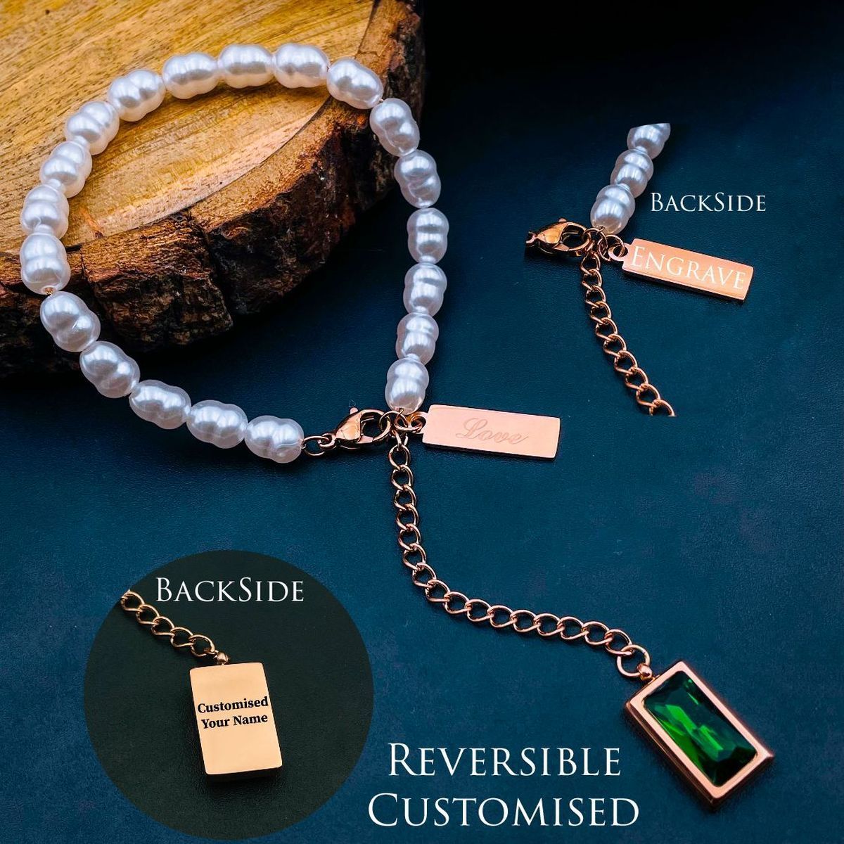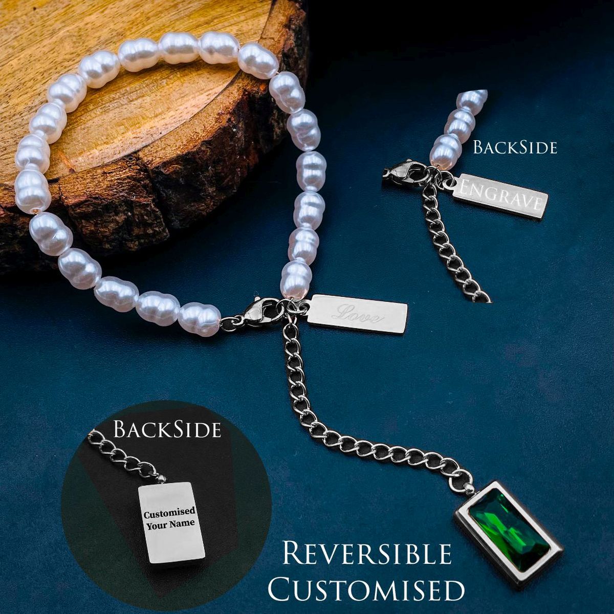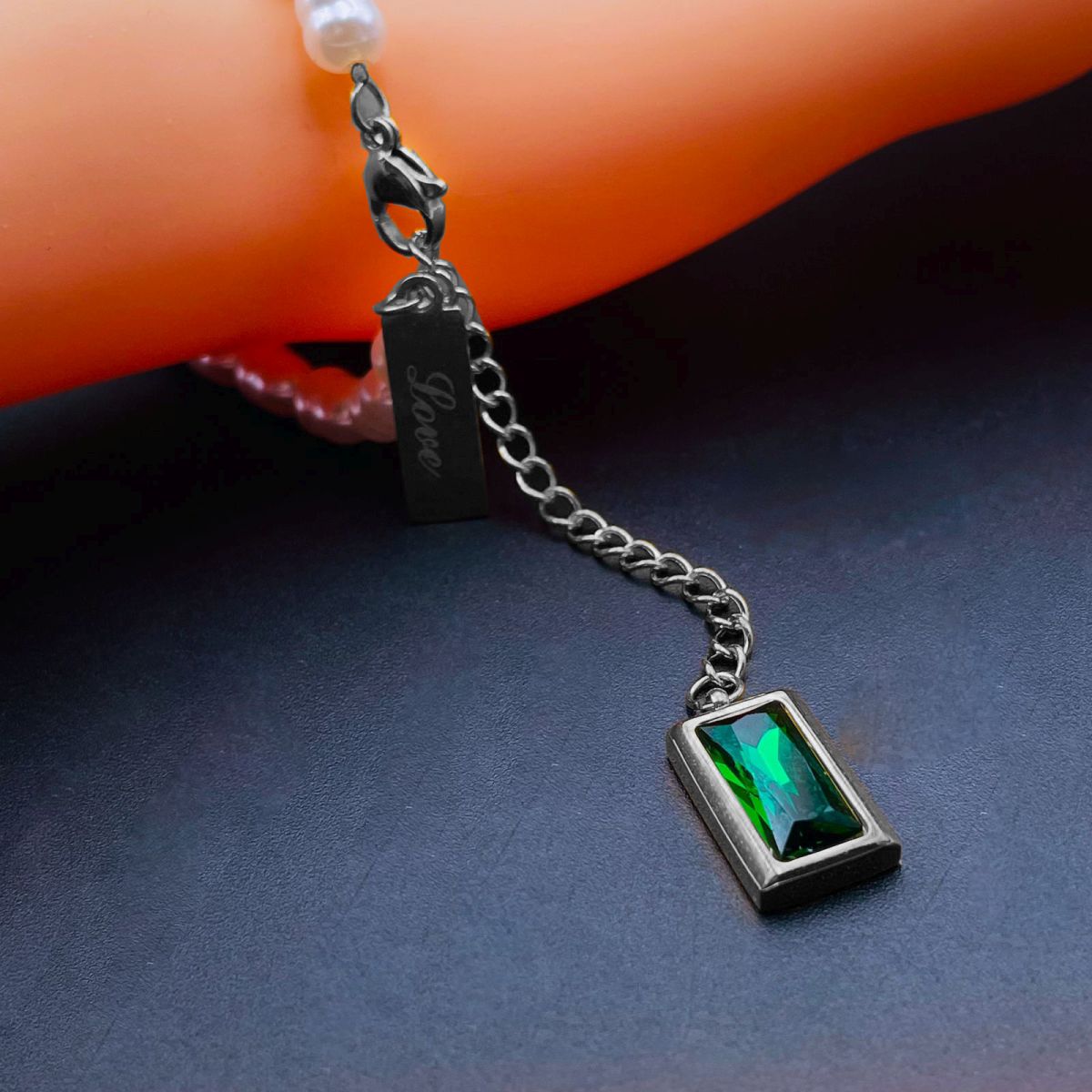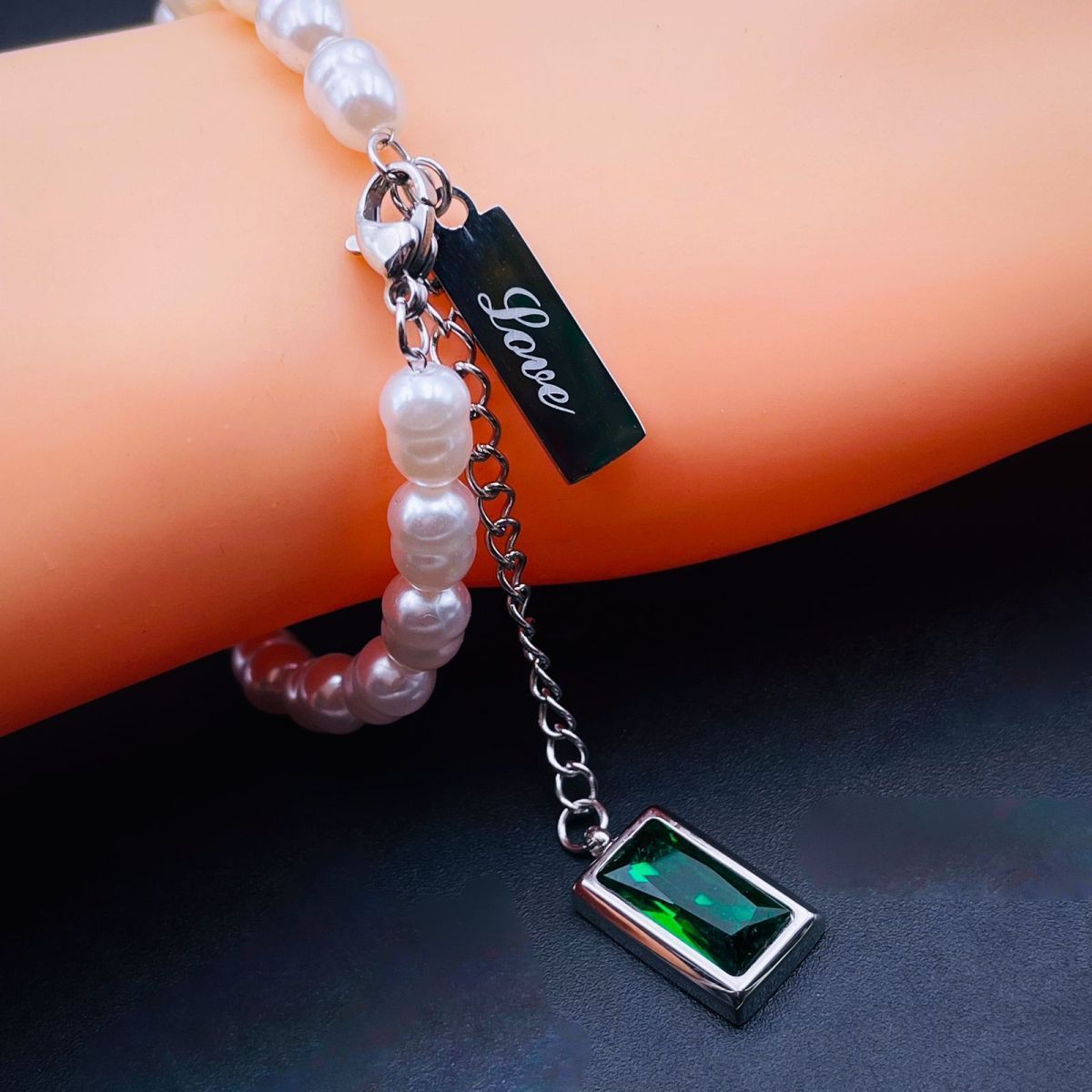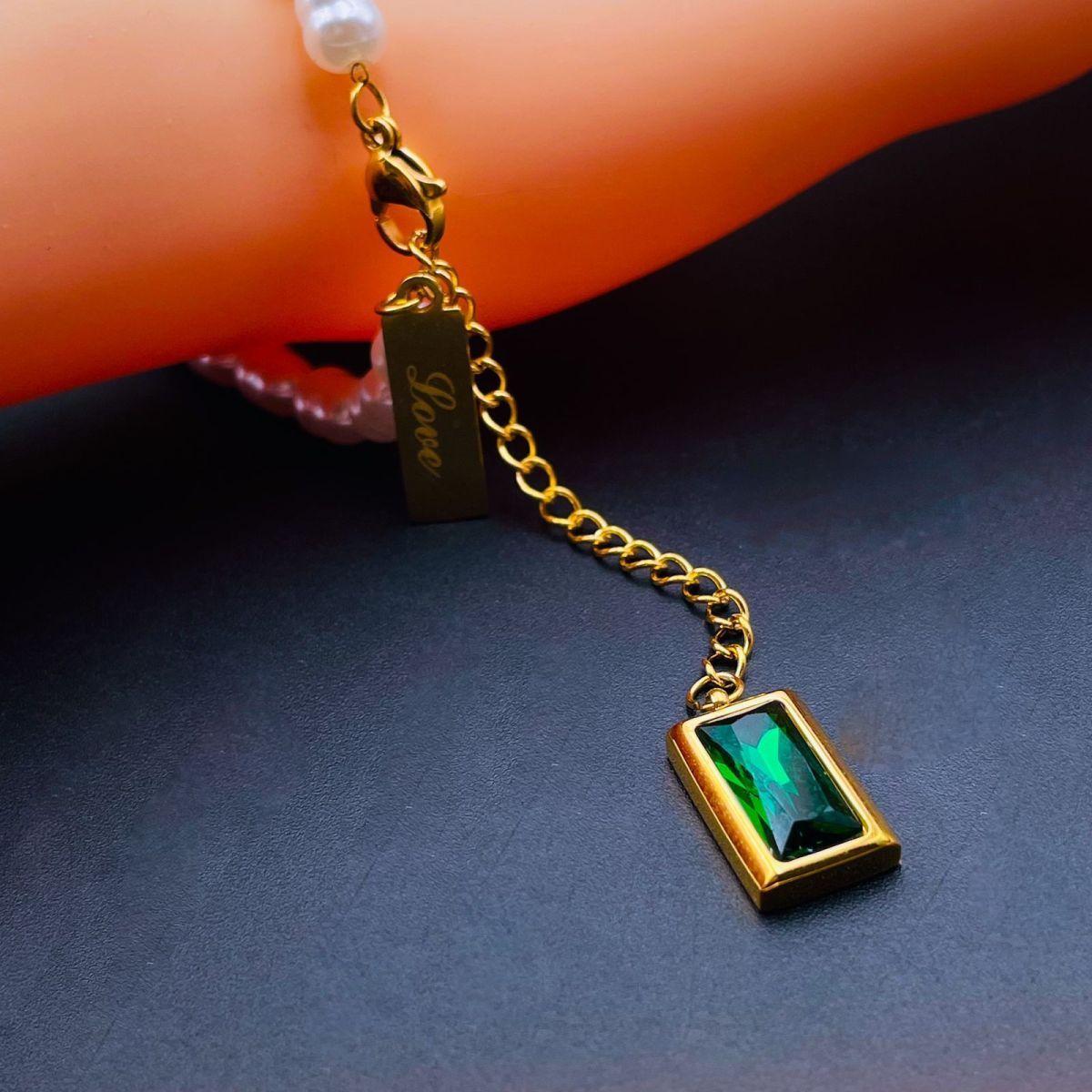 This Enchanting Bracelet For Women Is Adorned With Love-Themed Emerald Green Pearl Links And A User-Friendly Toggle Clasp. Crafted From Resilient 18K Gold Stainless Steel, It Seamlessly Blends Classic Romance With Contemporary Elegance. The Addition Of Emerald Green Pearls Infuses A Touch Of Sophistication, Making It An Ideal Accessory For Any Occasion. This Bracelet Effortlessly Combines The Sentiment Of Love With Durability, Making It A Cherished Addition To Any Jewelry Collection.