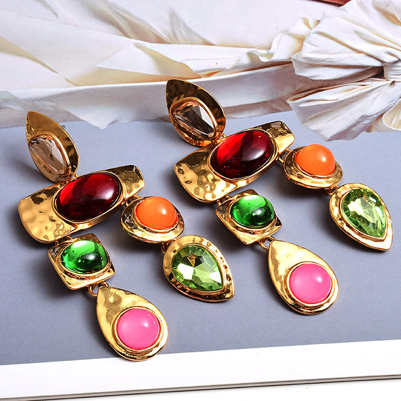 Vibrant multi-color design featuring red, green, orange, and pink stones for an eye-catching look.