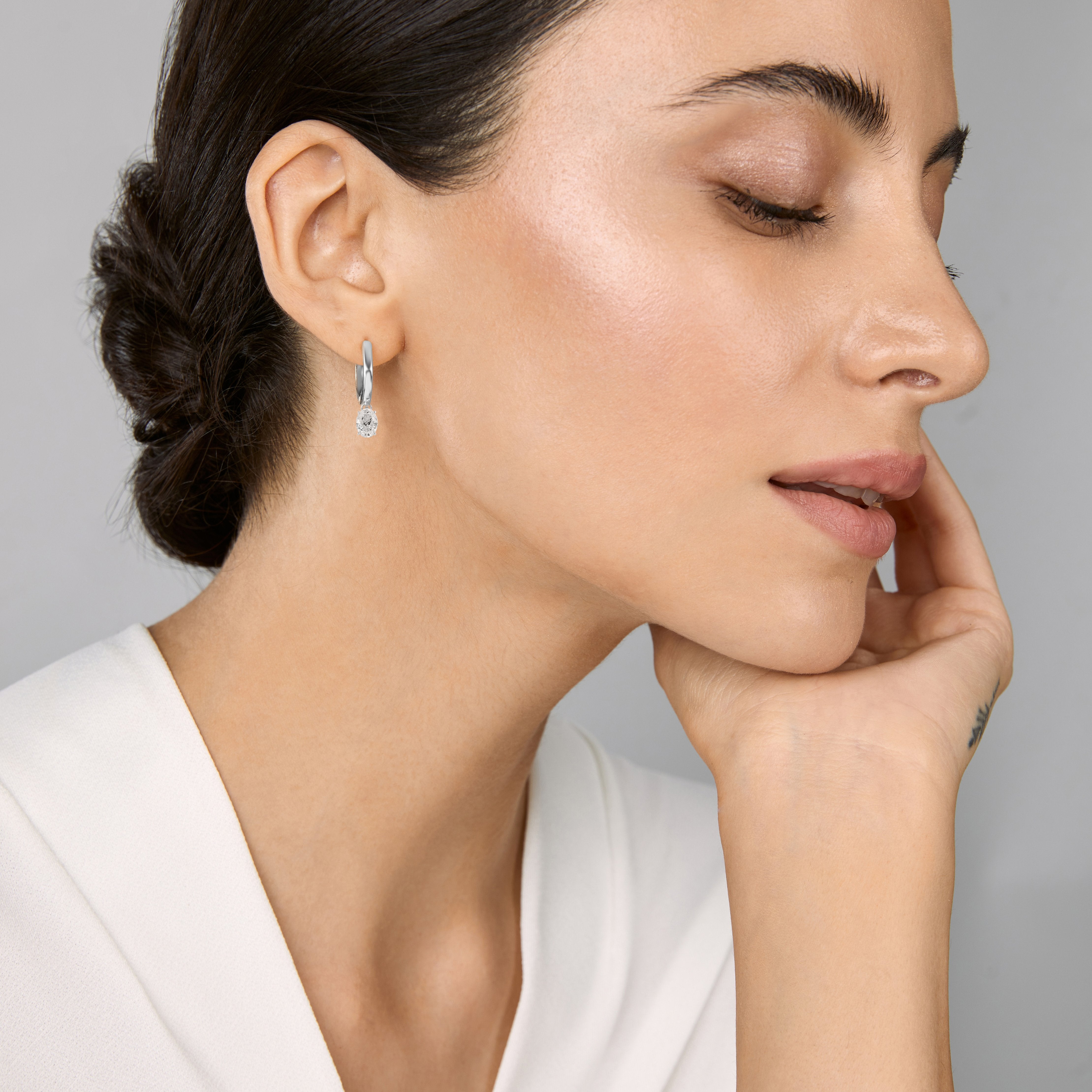 Rose Gold-plated earrings with sparkling clear crystal oval Crystals dangling elements. This pair of pierced earrings by ZIVOM offers beautiful versatility. Two parts make up each earring: A hoop adorned with oval -shaped stone attached to it. A great way to enhance everyday outfits.[/shortdesc]