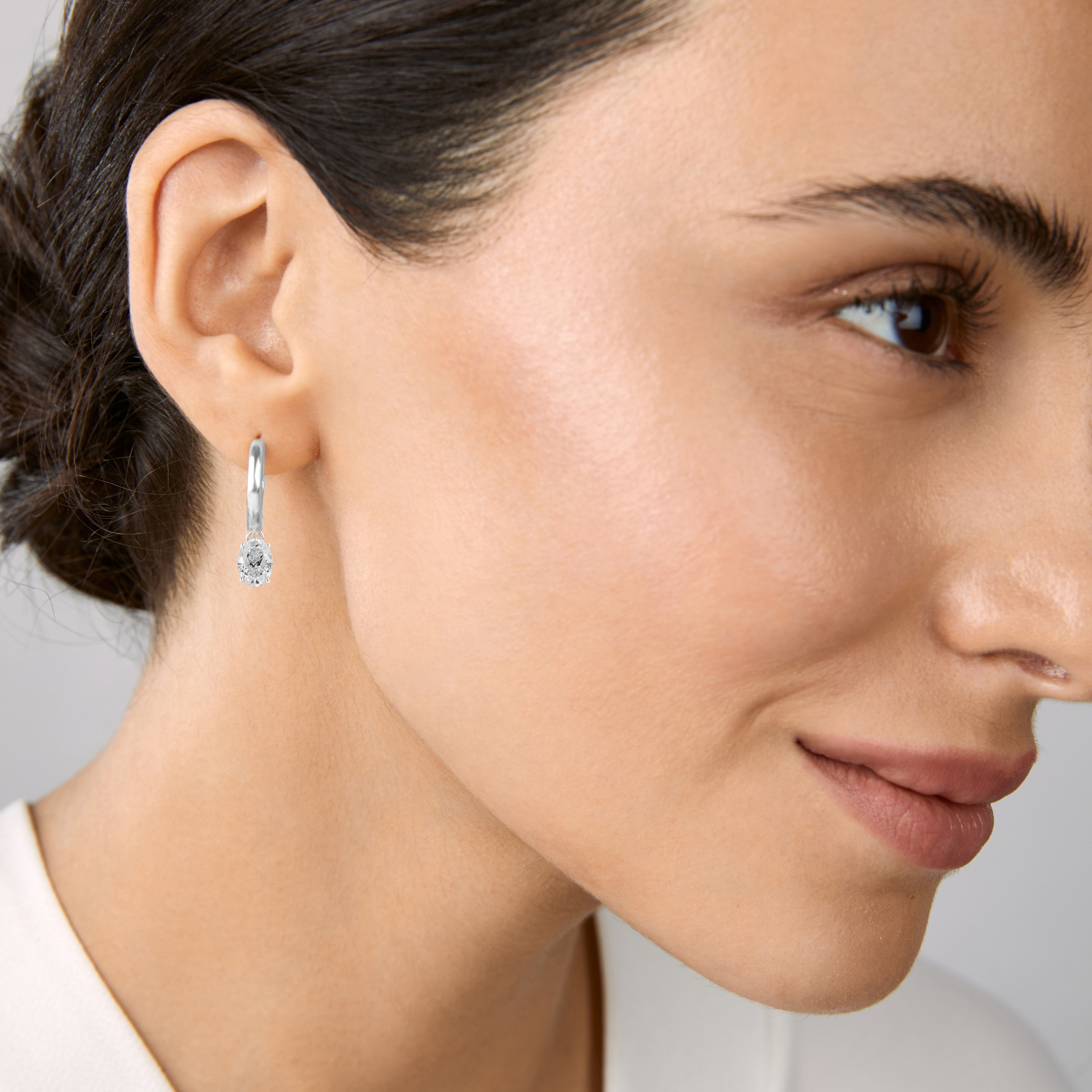 Rose Gold-plated earrings with sparkling clear crystal oval Crystals dangling elements. This pair of pierced earrings by ZIVOM offers beautiful versatility. Two parts make up each earring: A hoop adorned with oval -shaped stone attached to it. A great way to enhance everyday outfits.