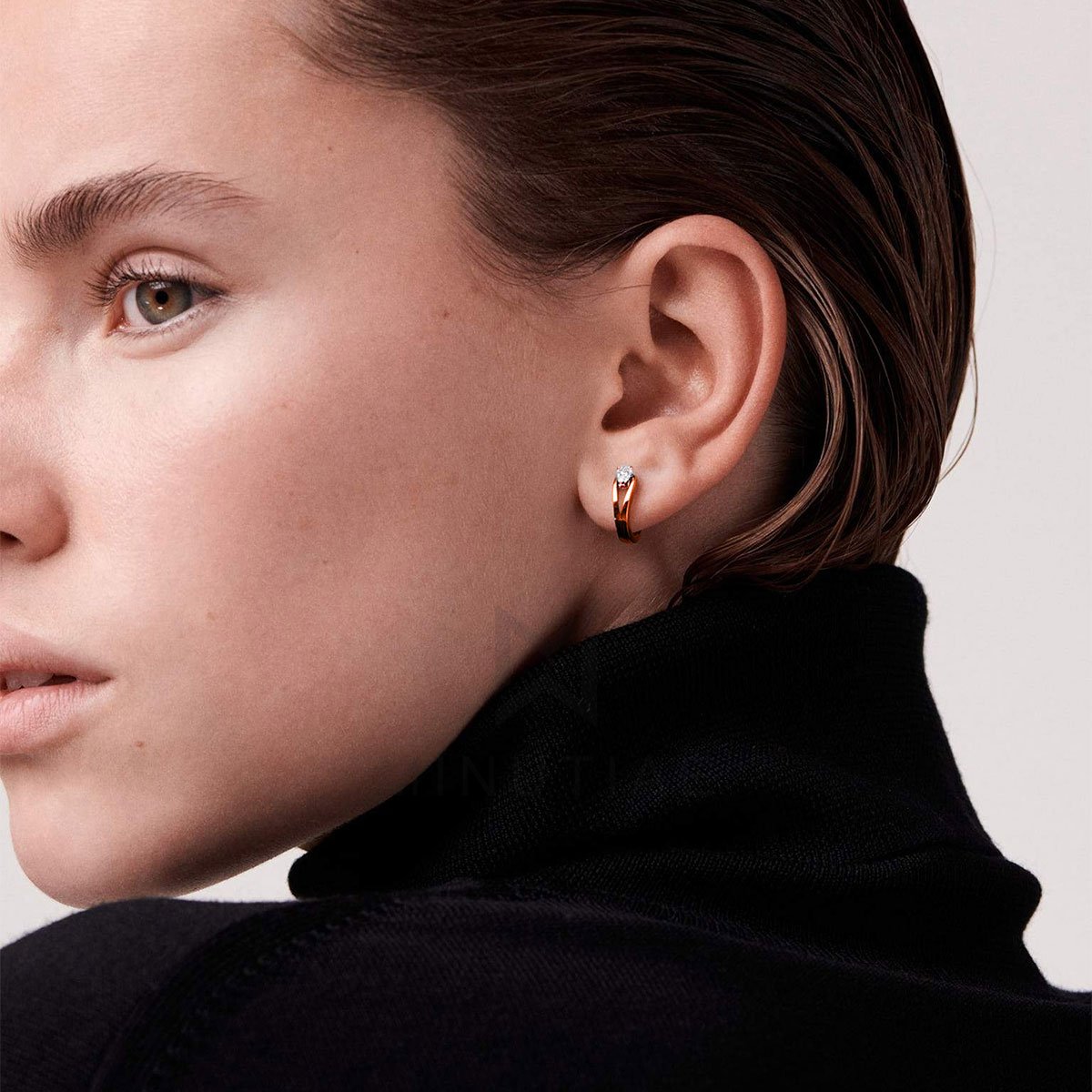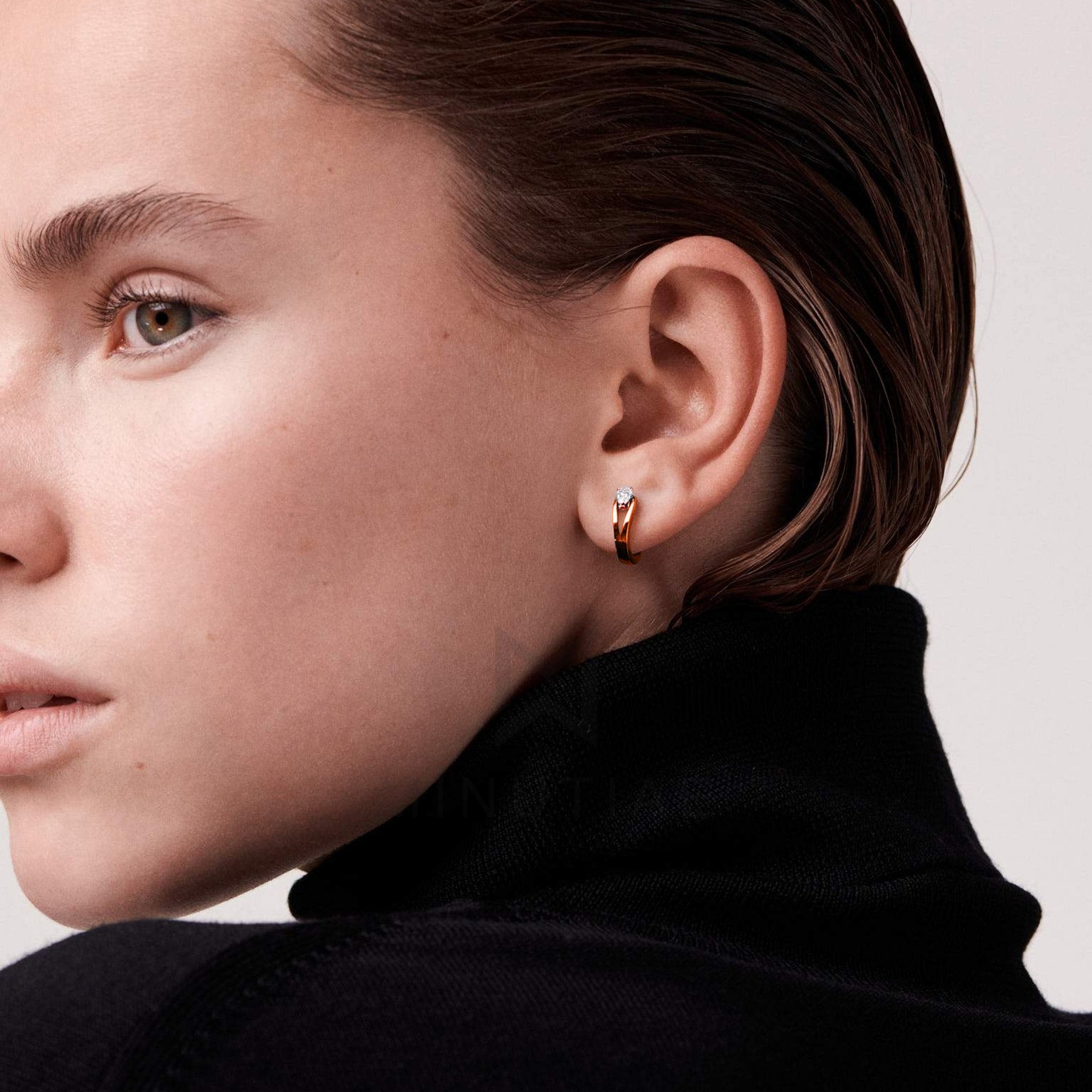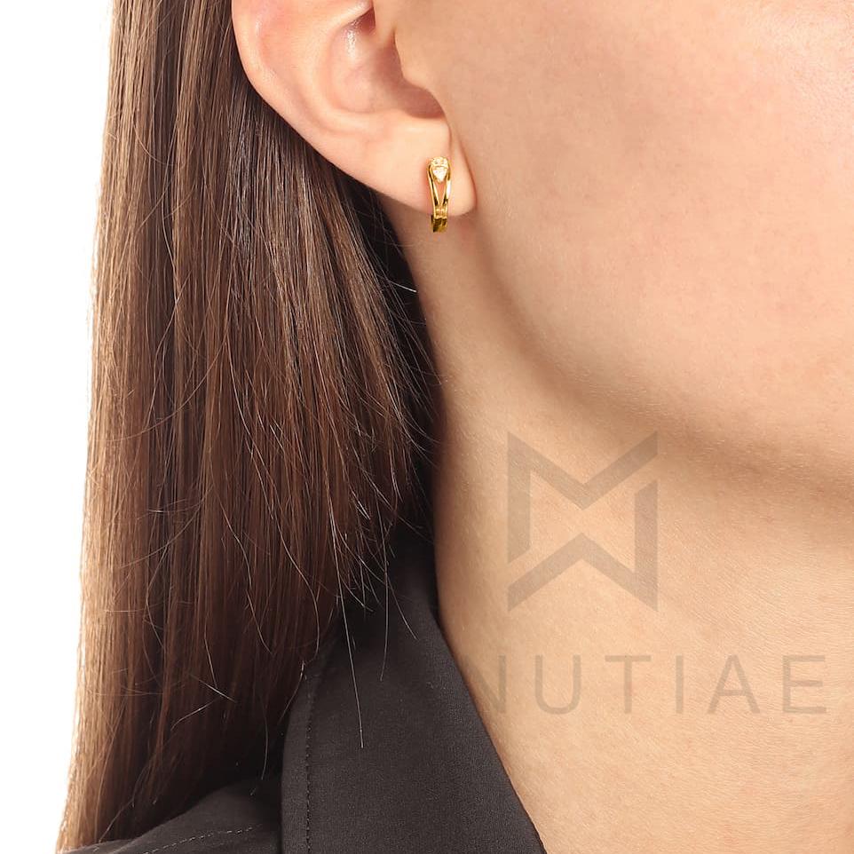 This petite earring from ZIVOM modern collection is an elegant yet contemporary way to mix-and-match your jewellery. It's made from 18kt rose gold-plated alloy and the focal point is, undoubtedly, a pear-cut white crystal in a prong setting. Glamorous evenings are assured when worn out with other pieces from this brand.