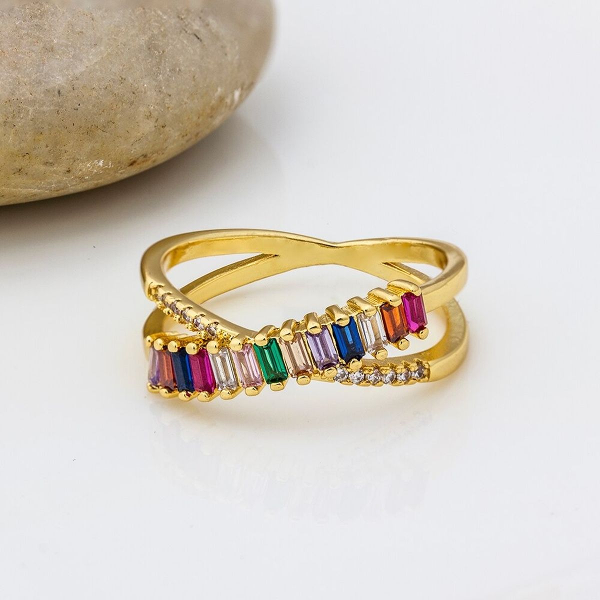 Design: Rainbow Colour Baguette Crystals, Suitable For Women And Girls, Great As Gift For Ladies And Girls. Materials: Copper & Simulated Baguette Cut Diamond.