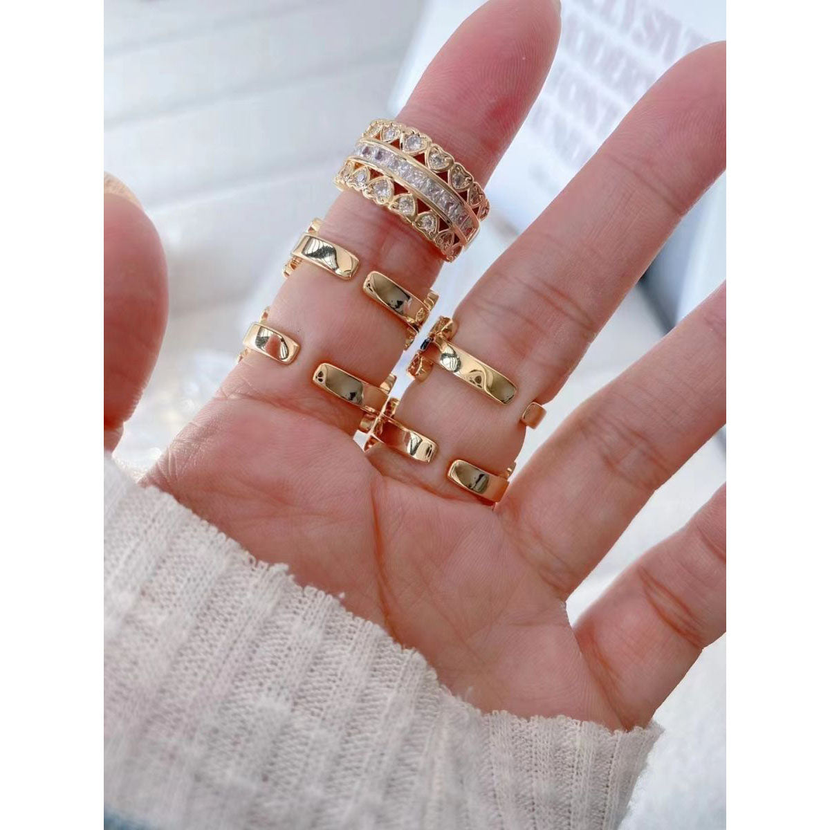 Inner Diameter = 17 mm, Width = 10 mm, Weight = 8 Grams, Adjustable Ring: The Ring Is Opened And Adjustable, Fit For Sizes From 6 To 10. Minimalist Stylish Design, Suitable For Any Girls And Women.