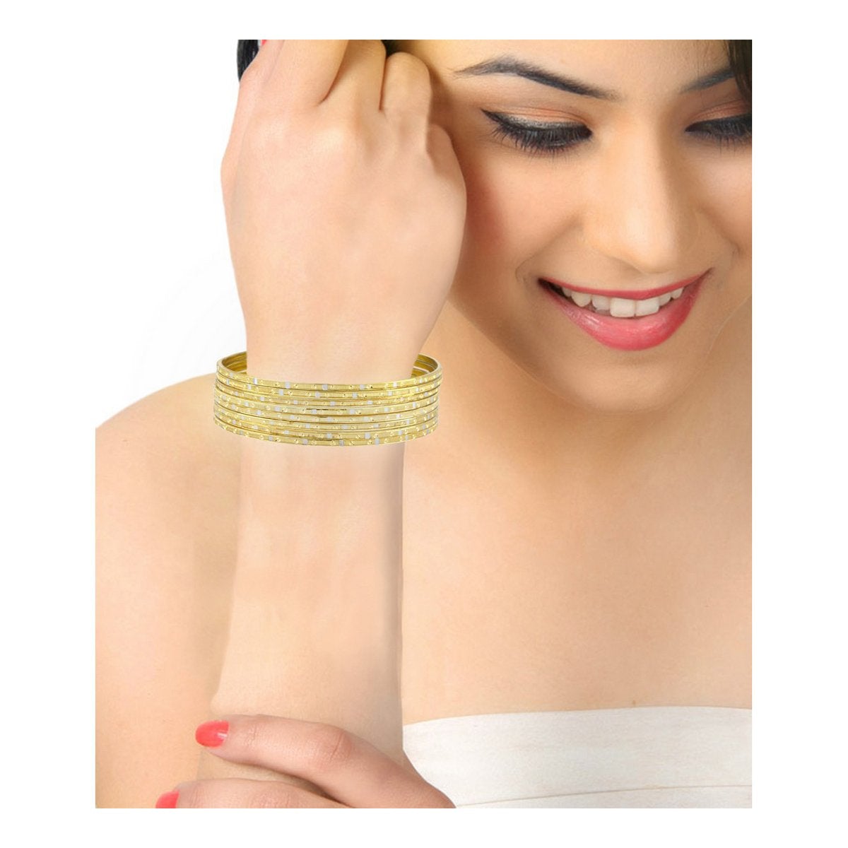 Sizes: Surface Width Is 2 Mm, Dimensions:- Surface Width: 10 Mm. Sizes: The Bangle Is Available In 3 Sizes. Internal Diametre; 2.4 Anna = 2.25 Inch, 2.6 Anna = 2.365 Inch, 2.8 Anna = 2.5 Inches. Please Refer Size Chart And Order Correctly.