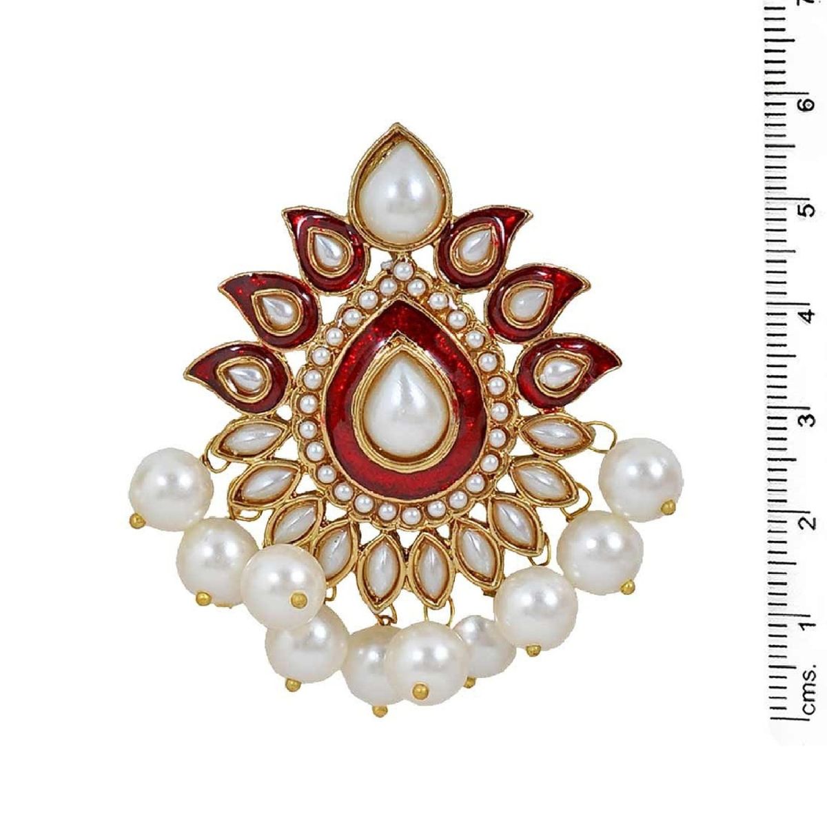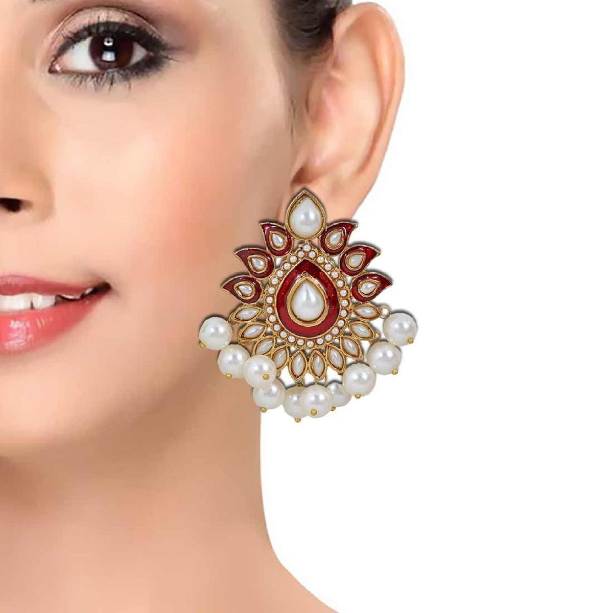 Design: Handcrafted Chaand Bali Design, Adorned With Maroon Meenakari And Pearls, Perfect For Semi-Formal Occasions.