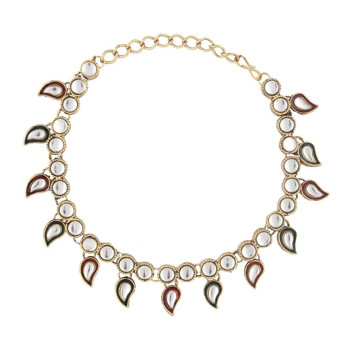 Kundan beautifully bordered with red and black meenakari over gold plating.