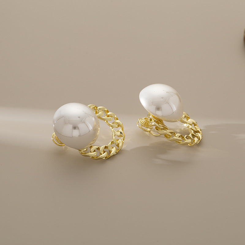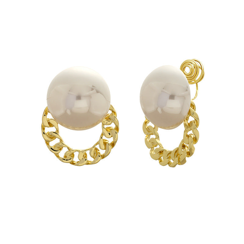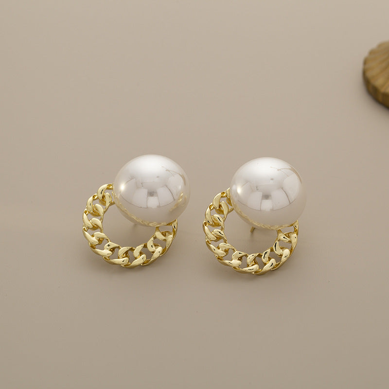 Upgrade your jewellery collection with these elegant White Gold Plated Pearl Alloy Stud Earrings For Women. Designed with a glossy oversized pearl paired with a chic gold-plated chain-style hoop, these earrings bring together classic charm and modern sophistication. Their minimal yet stylish design makes them perfect for both everyday wear and special occasions. Lightweight, versatile, and effortlessly fashionable—these earrings are a must-have accessory for women who love timeless elegance with a trendy twist.